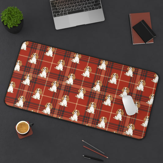 Blenheim Cavalier King Charles Spaniel Dogs Pattern Desk Mat | Red Tartan Plaid Puppy Mouse Pad Surface
