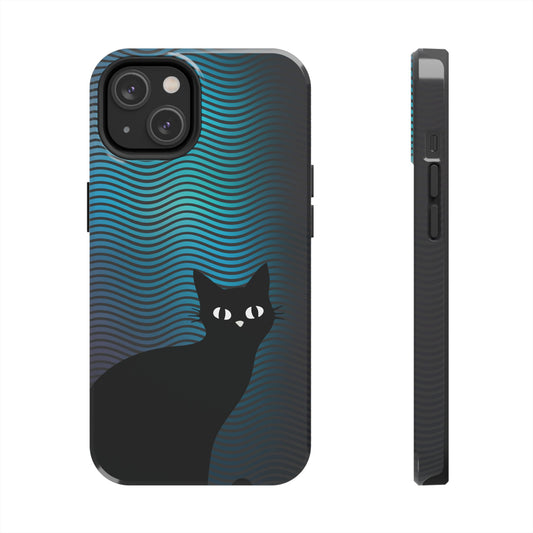 Black Cat Cell Phone Case | Peeking Kitty Graphic on Wavy Teal Background
