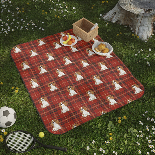 Blenheim Cavalier King Charles Spaniel Dogs Plaid Picnic Blanket | Red Tartan Dog Pattern Blankets