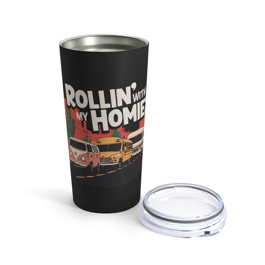 Rollin' With My Homies Van Skoolie RV Vanlife Caravan in the Desert Insulated Tumbler 20oz
