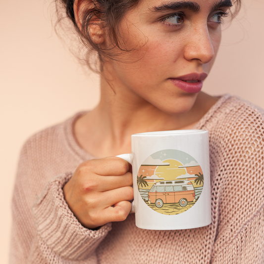 Vintage Van Dreams Coffee Mug - Nomad Vanlife Campervan White Ceramic Tea Mugs 11oz, Coastal Beach Travlel Gifts for Vanlifers