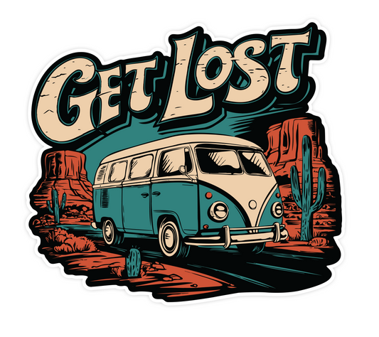 Get Lost Vanlife Roadtrip Sticker - Waterproof, Fade-Resistant Nomad Vintage Van Decal Stickers
