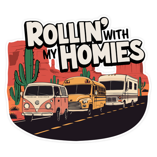 Rollin' With My Homies Van RV Caravan Sticker - Waterproof, Fade-Resistant Vanlife Nomad Retro Camper Decal Stickers