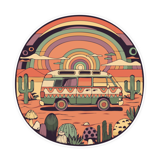 Roadtrippin' In The Desert Sticker - Vanlife Retro Van Travel Psychedelic Trippy Nomad Decal Stickers
