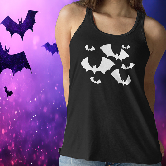 Black Bats Tank Top Women's Halloween Goth Racerback Tank with Spooky Gothic Sleeveless Shirt with Flying Bat Print
