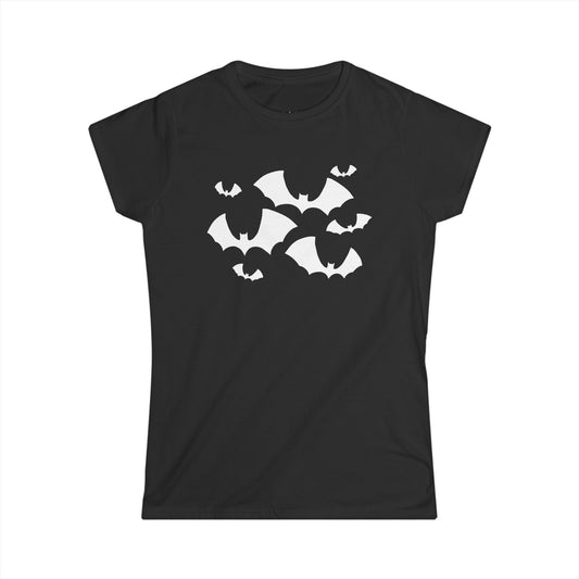 Black Bats Halloween Gothic Women's Soft T-shirt with Spooky Goth Flying Bat Print Graphic Tee 100% Cotton