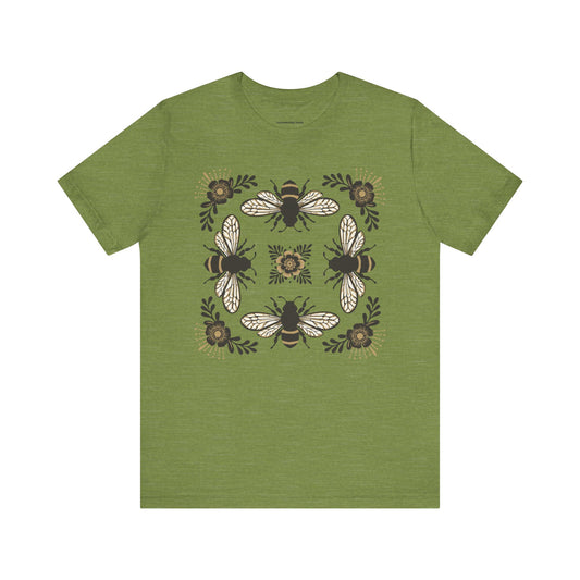 Bees & Flowers Botanical T-Shirt, Nature Lover Tee, Garden Gift for Women, Spring Summer Ladies Top, Tee with Four Bees Floral Graphic