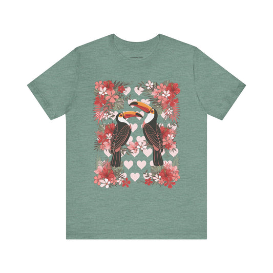 Toucan Tropical Love Birds T-shirt, Casual Summer Shirt, Gift for Bird Lovers, Vacation Wear, Floral Nature Inspired Tee