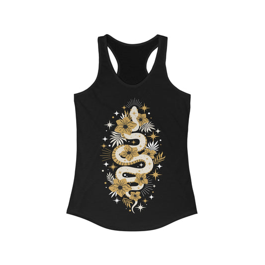 Mystic Golden Snake Women's Racerback Boho Tank Top, Ideal for Bohemian Style, Festival Clothing, Yoga Top, Gift for Her, Summer Fashion