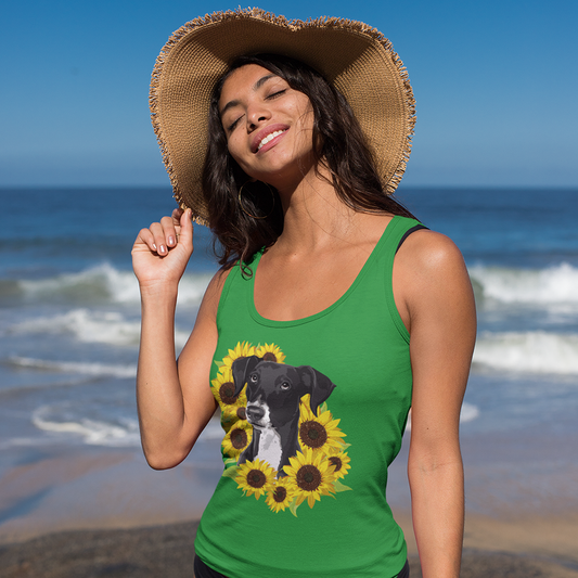 Marley Dog in Sunflowers Women's Racerback Tank Top - Black Lab Dog with Sunflower Art Print