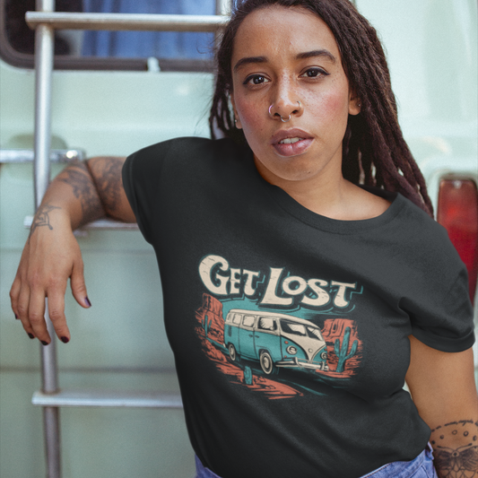 Get Lost Vintage Van Women's Fitted T-shirt - Vanlife Utah Arizona Desert Roadtrip Ladies Tee Travel Nomad T-shirts