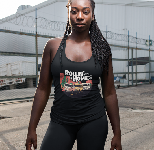 Rollin' With My Homies Tank Top - Van Skoolie RV Vanlife Caravan in the Desert Women's Sleeveless Shirt Racerback Tank