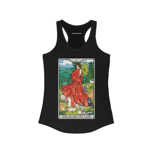 Childless Cat Lady Tarot Card Women's Racerback Tank Top Child-Free Cat Mom Shirt with Woman and Cats Design - Light Skin