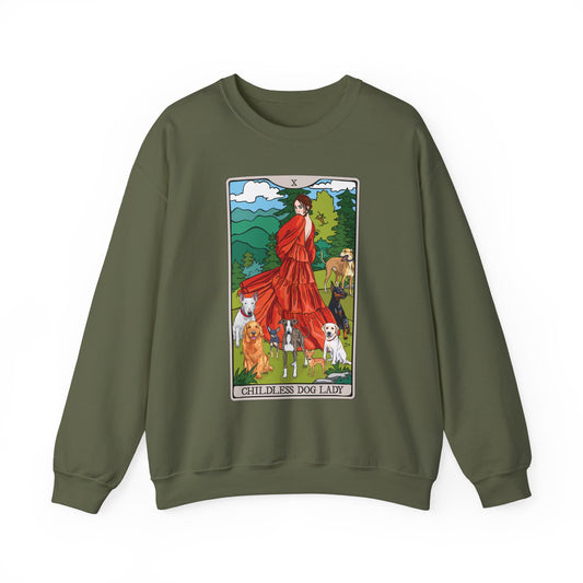 Childless Dog Lady Tarot Card Sweatshirt, Childless Women's Crewneck Sweater, Witchy Dog Lover Long Sleeve Shirt