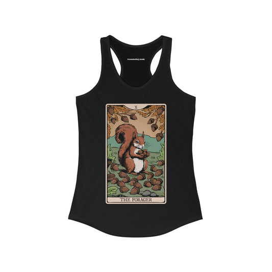 The Forager Squirrel Tarot Card Women's Racerback Tank Top with Nut Foraging Squirrel Tarot Card Print