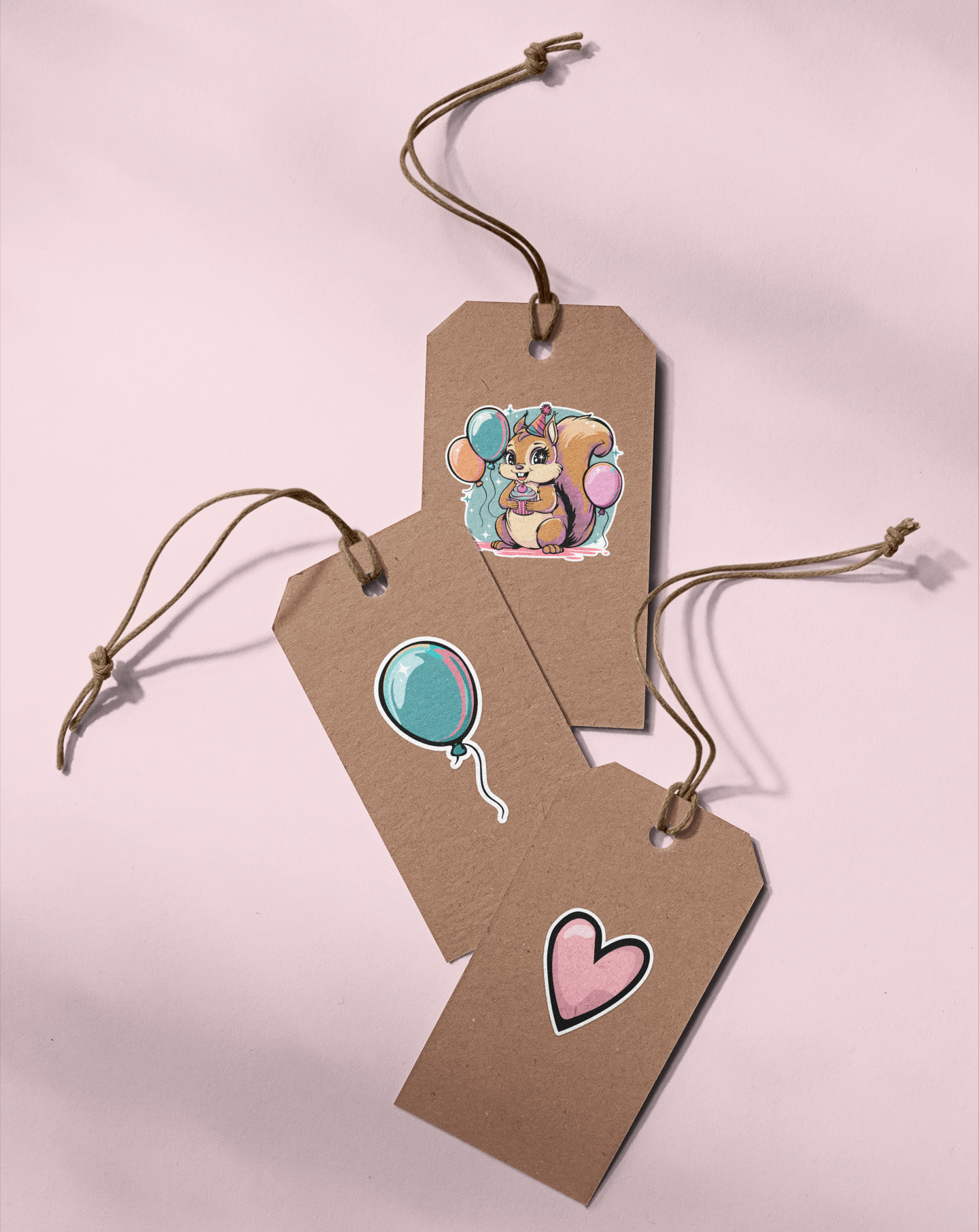 These festive Birthday Squirrels stickers are the cutest way to add a little celebration and character to your gift bag, water bottle, laptop, notebook, or car. Approx size of sticker: 2". Vinyl squirrel stickers are waterproof, fade-resistant, and scratch resistant. Suitable for indoor and outdoor use. The squirrel is wearing a party hat, holding a celebratory b-day cupcake, and is surrounded by colorful balloons. These stickers make a great birthday gift for a friend, a party favor for a b-day celebration, or a fun treat for yourself on your special day! Available in 5, 10, and 20 stickers packs. Great for birthday party favors or gifts for a squirrel themed celebration!