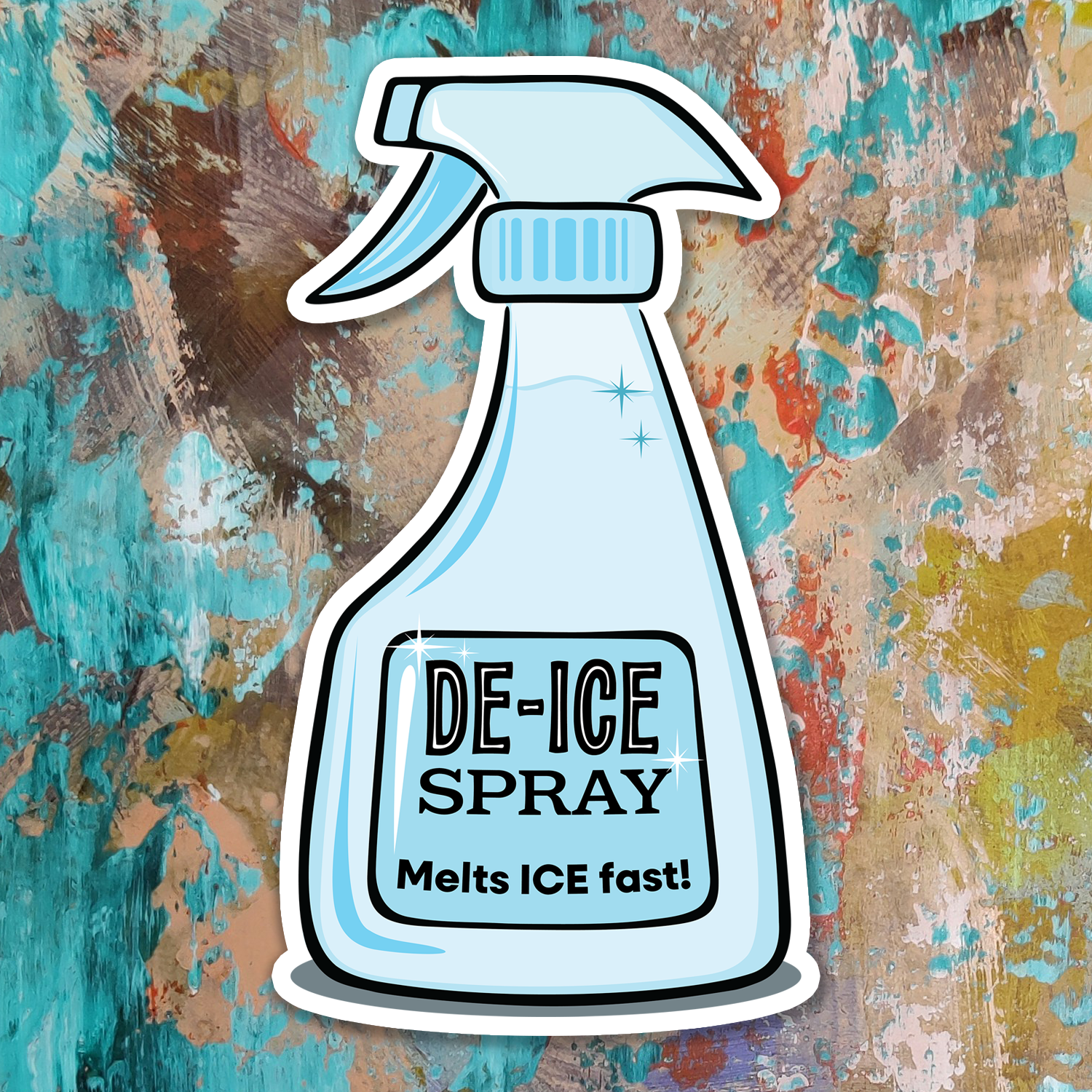 Political sticker with the image of a spray bottle with the label "De-ICE spray - Melt ICE Fast.". In these stressful and uncertain times, we need to subtly (or not so subtly) make our stance known and show your support for those affected by the current situation. The perfect stickers to slap on your car or bring to hand out at the next rally, protest, march, or parade.