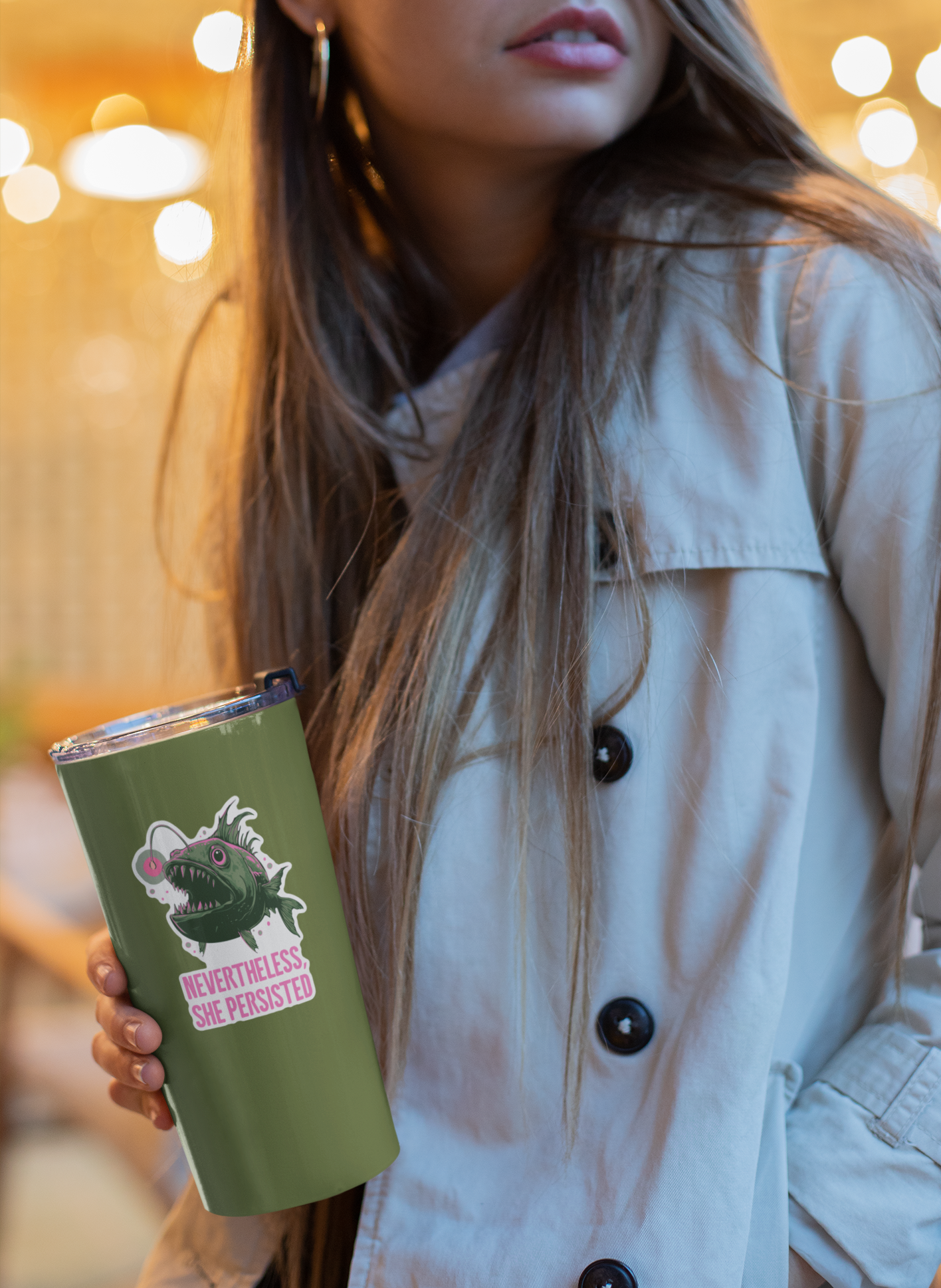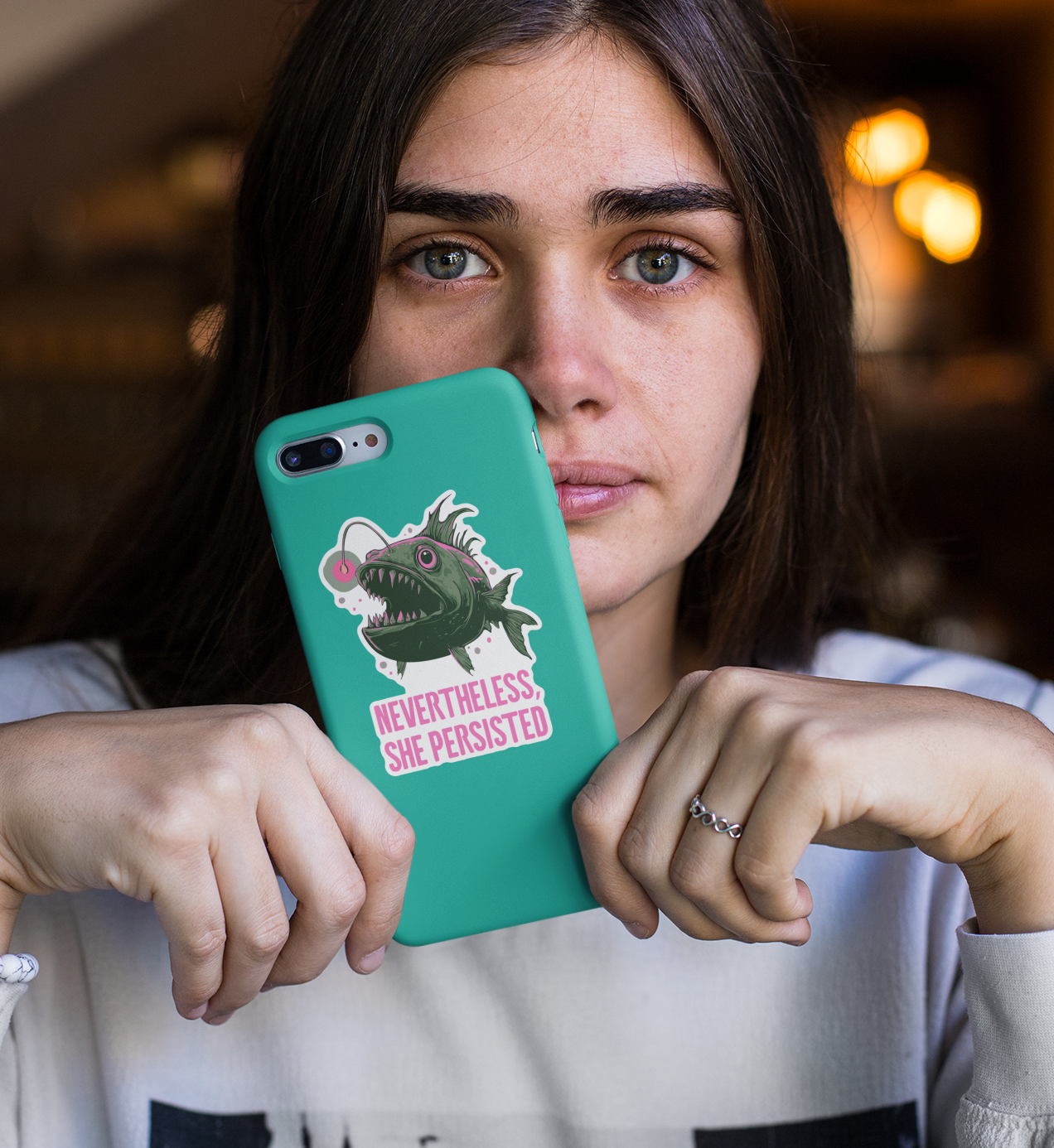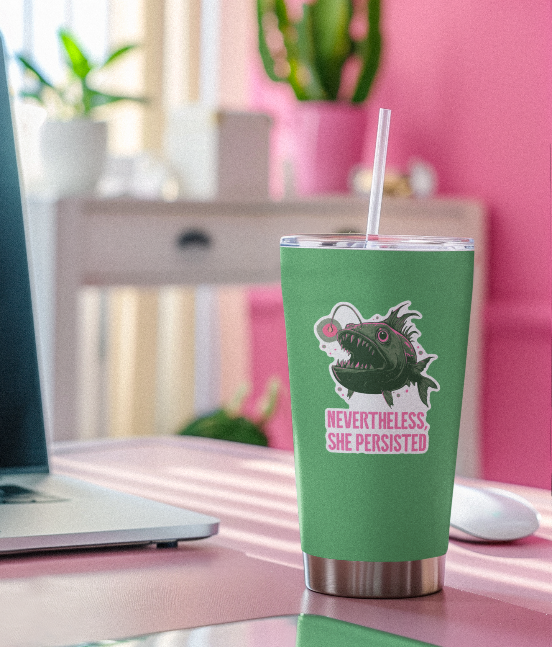 These funny "Nevertheless, She persisted" Deep Sea Anglerfish stickers are a fun way to add character to your water bottle, laptop, or notebook. These stickers make a great gift for a feminist friend with a dark sense of humor or a fun treat for yourself! Size of sticker: 3.5".