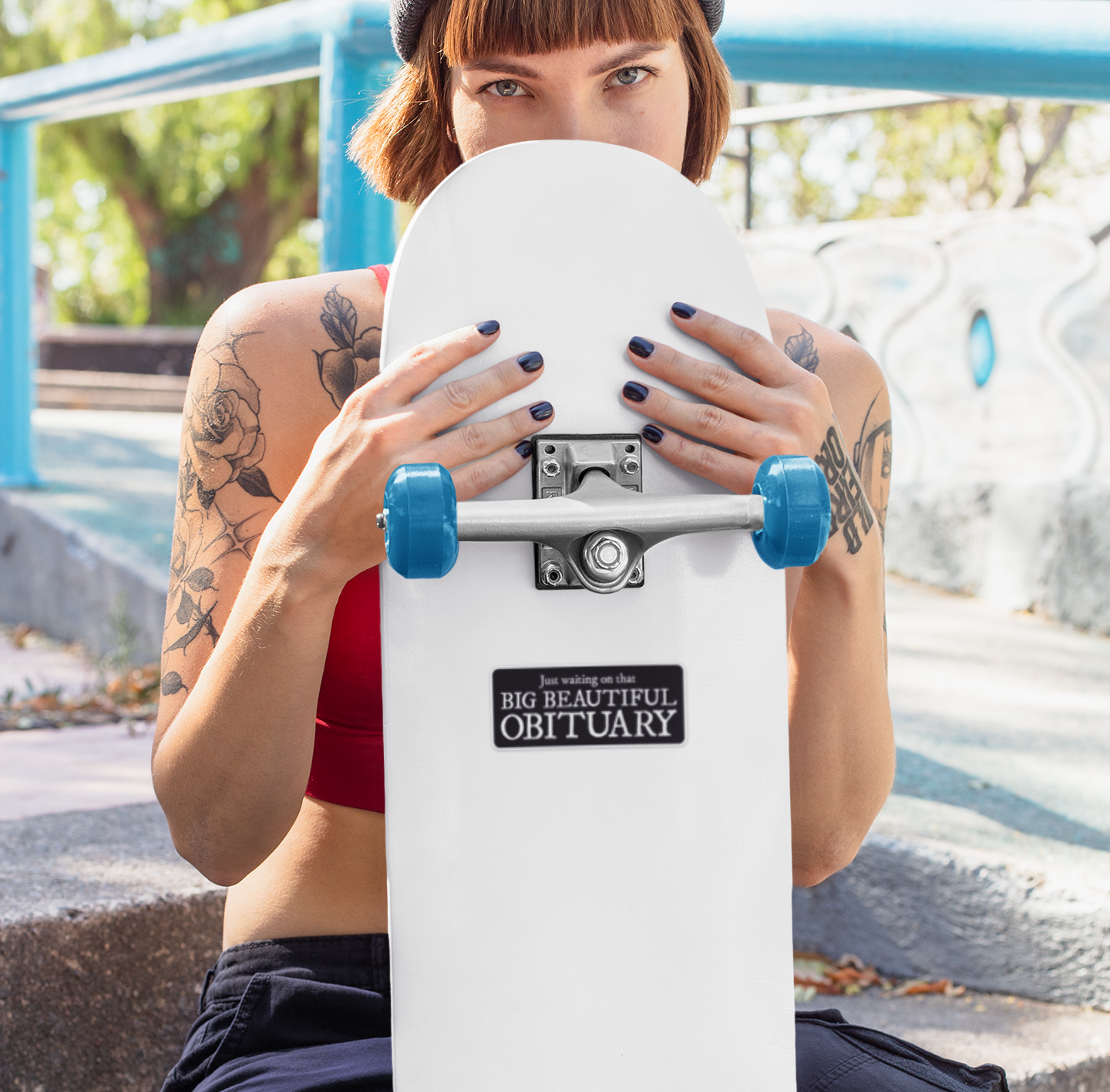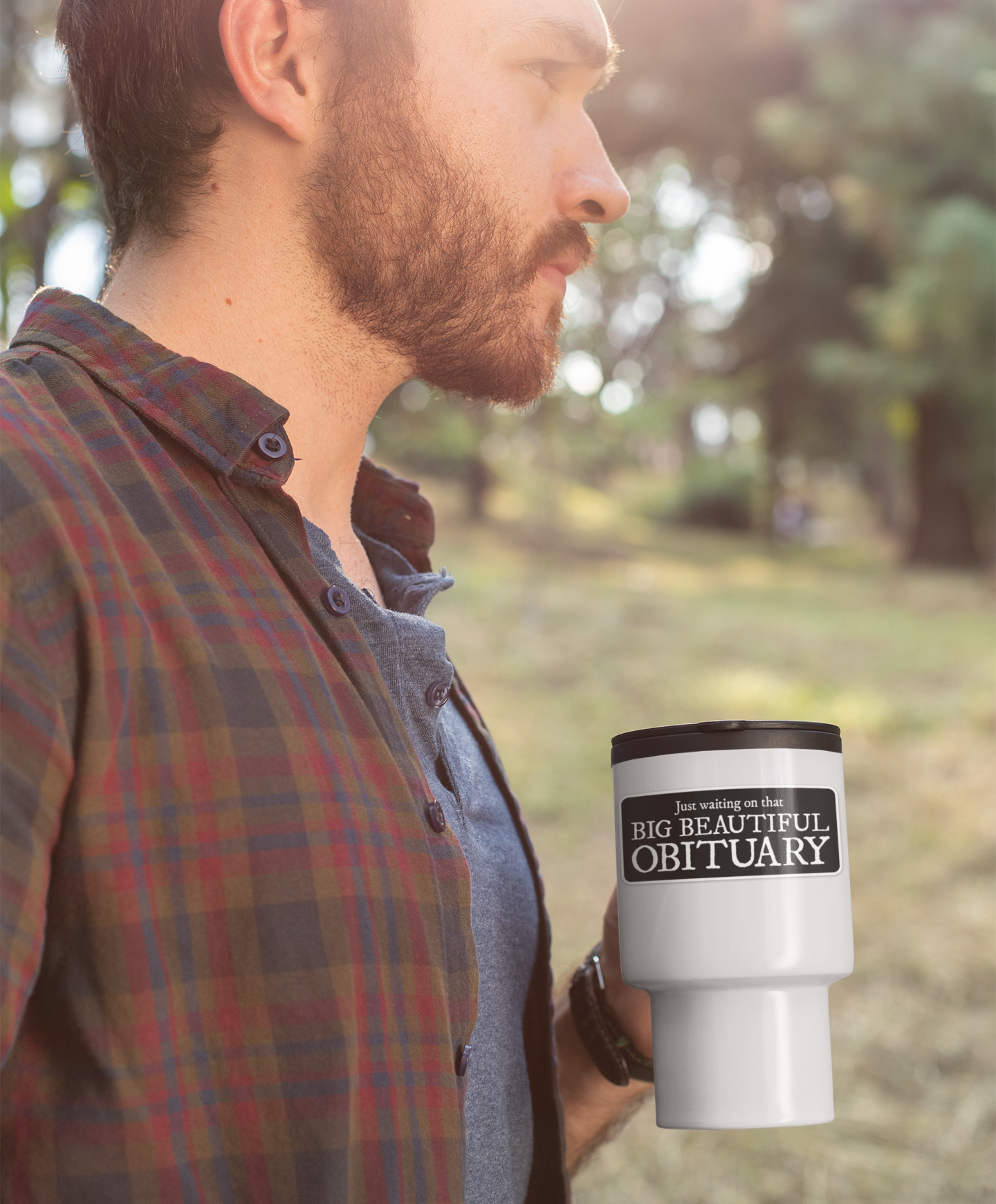 Funny political sticker featuring "Just waiting on that Big Beautiful Obituary" text. In these stressful and uncertain times, sometimes we just need to find some humor and subtly (or not so subtly) make our stance known. The stickers to slap on your car or bring to hand out at the next rally, protest, march, or parade. Or keep on hand or as a gift for friend for when "it" happens.