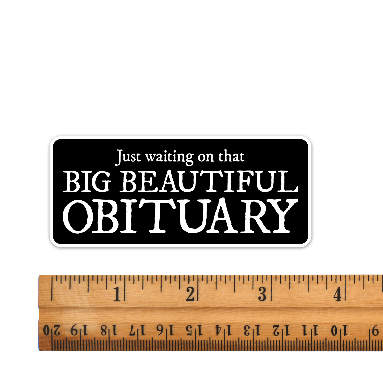 Big Beautiful Obituary Sticker - 3.5" Vinyl Decal Stickers Waterproof Outdoor Car, Leftist Political Humor Shirts, Anti-Trump Gifts