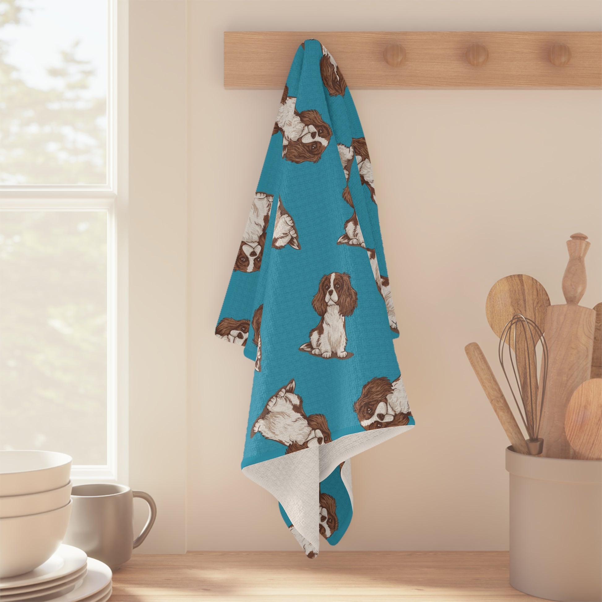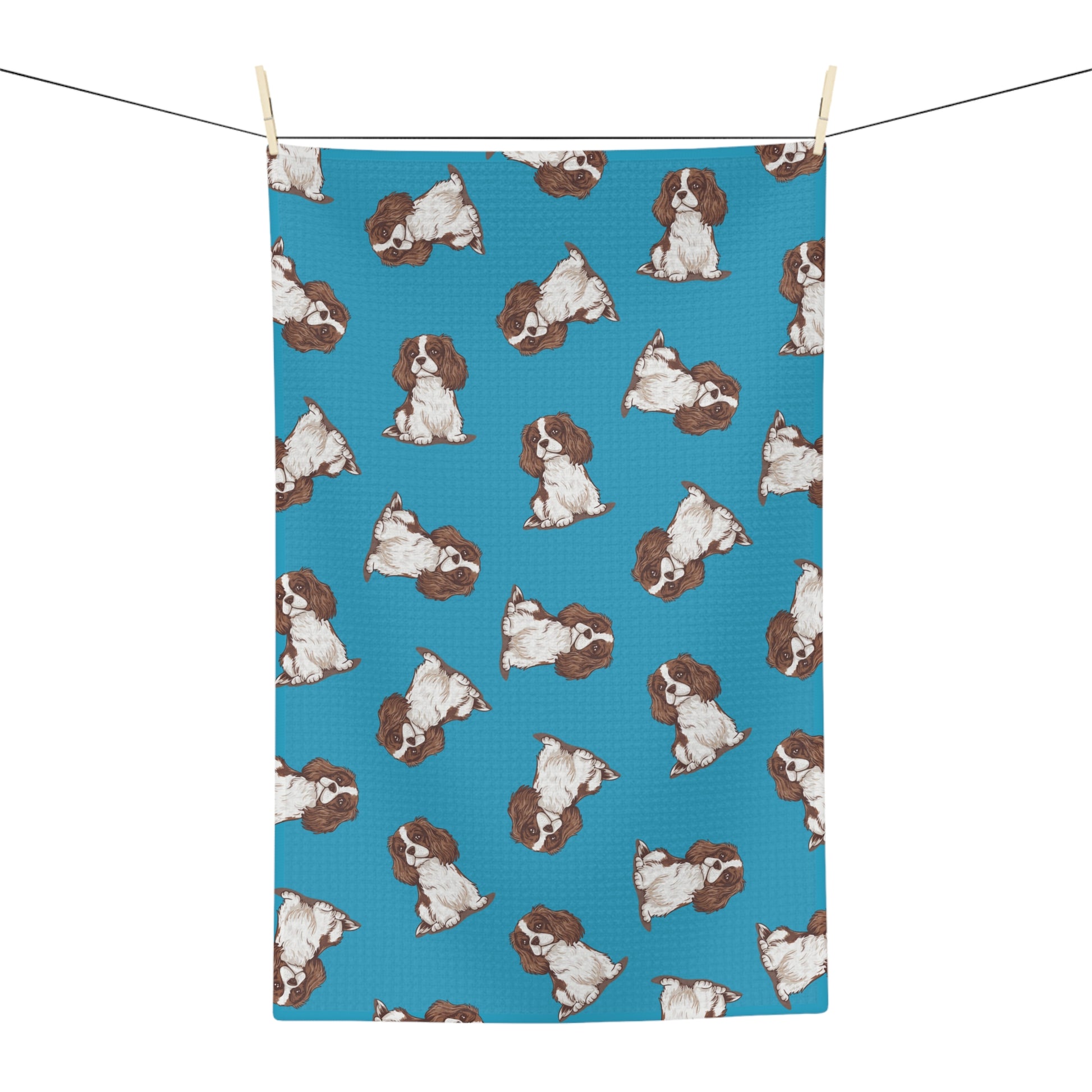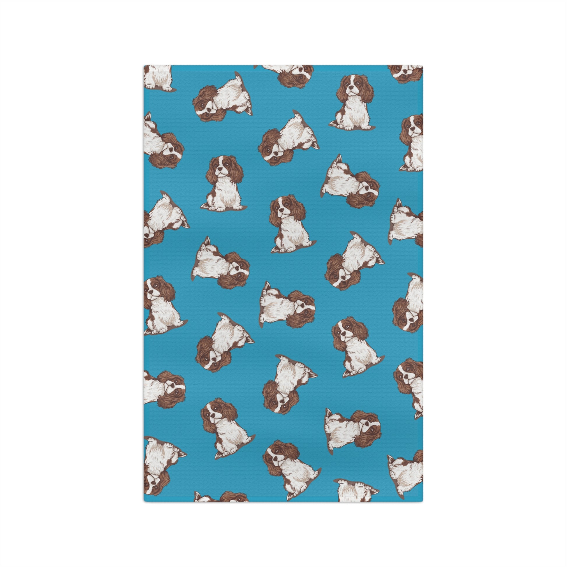 These Blenheim chestnut brown and white Cavalier King Charles Spaniel Dog pattern microfiber kitchen hand tea towels get the job done when it comes to cleaning or pure kitchen aesthetics. They're made from a composition of 85% micro-polyester and 15% polyamide, making them both durable and quick to dry. They come in one size that's perfect for kitchens of any scale. Perfect gift for a dog lover or a memorial for a beloved furry friend.