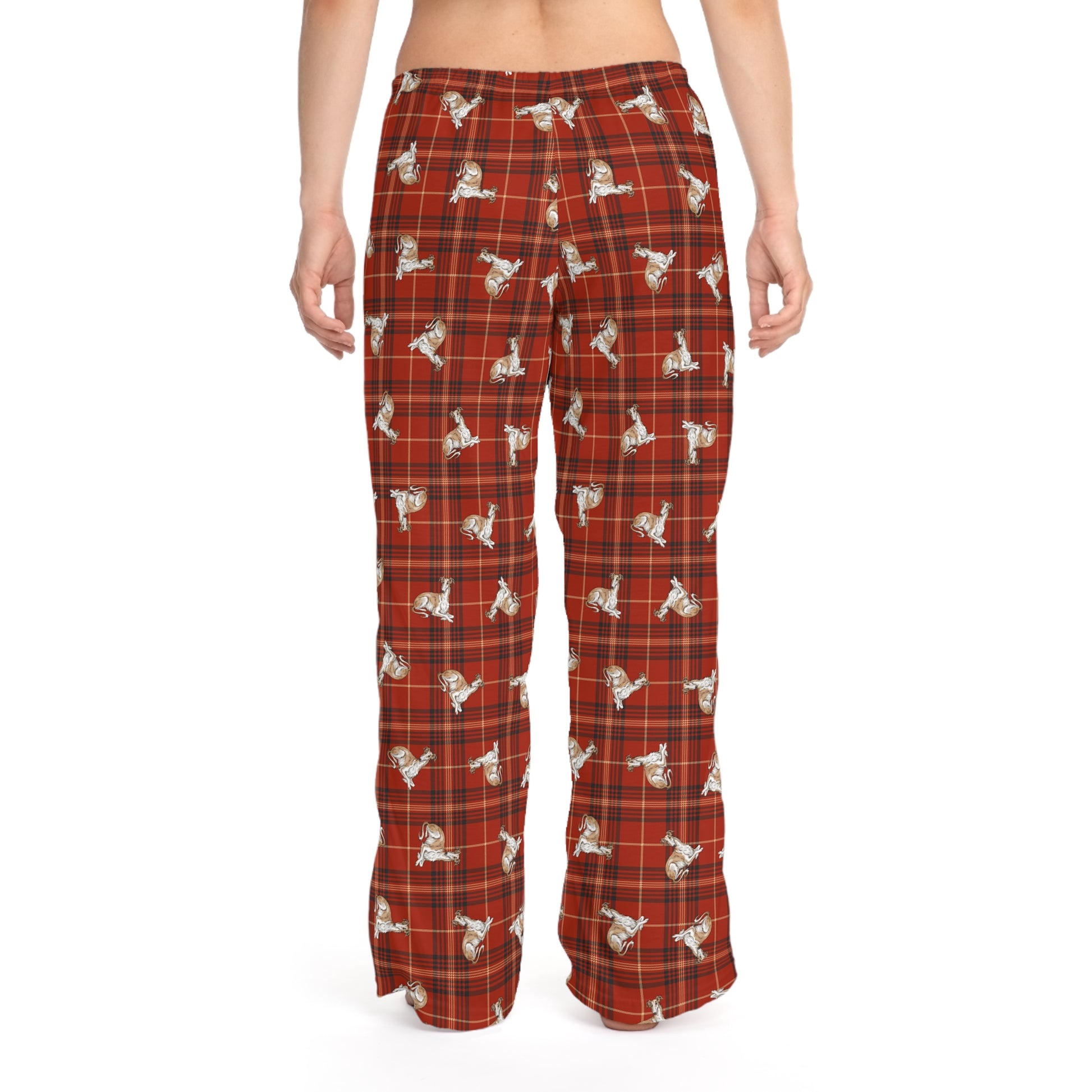 Indulge in supreme comfort and playful style with these Women’s Borzoi Dogs Pajama Pants. Made from soft 100% polyester jersey, they feature a vibrant, all-over plaid Russian Hunting Sighthound dog print that adds a whimsical touch to your festive winter loungewear. The relaxed fit and drawstring waist ensure a personalized fit that's perfect for cozy nights at home or lazy weekend mornings. Whether you're binge-watching your favorite Christmas movies or enjoying a warm cup of cocoa, these plaid Borzoi dogs pajama pants create a cheerful vibe that makes every moment feel special. Perfect for gifts during holidays, cozy family gatherings, or even sleepovers, these pants bring a smile to anyone looking for comfort and whimsy. A unique gift for a Borzoi owner or lover.