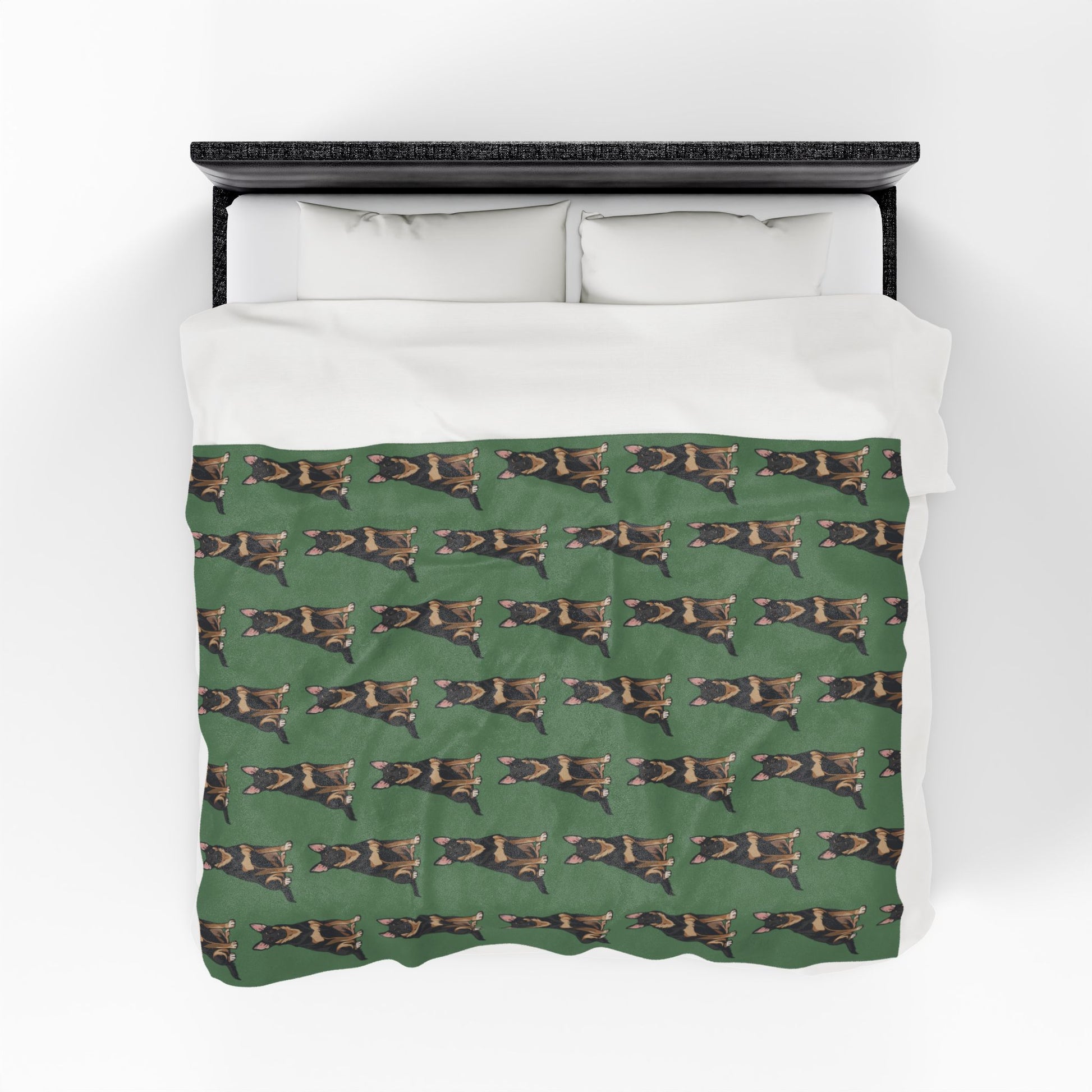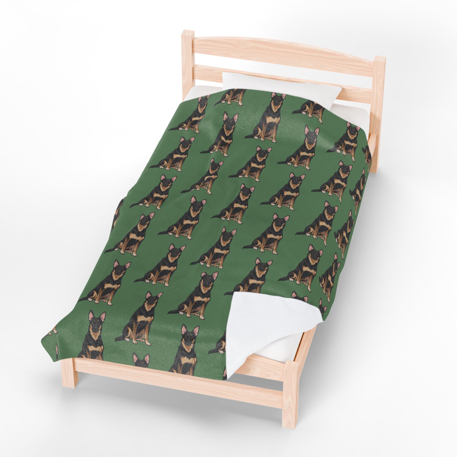 Experience the cozy warmth of this German Shepherd dogs green plush velveteen blanket. Perfect for dog lovers and animal enthusiasts, this blanket exudes comfort and style. Ideal for snuggling up on chilly nights or adding a pop of color to your home decor. Great gift for Christmas, birthdays, or any occasion.