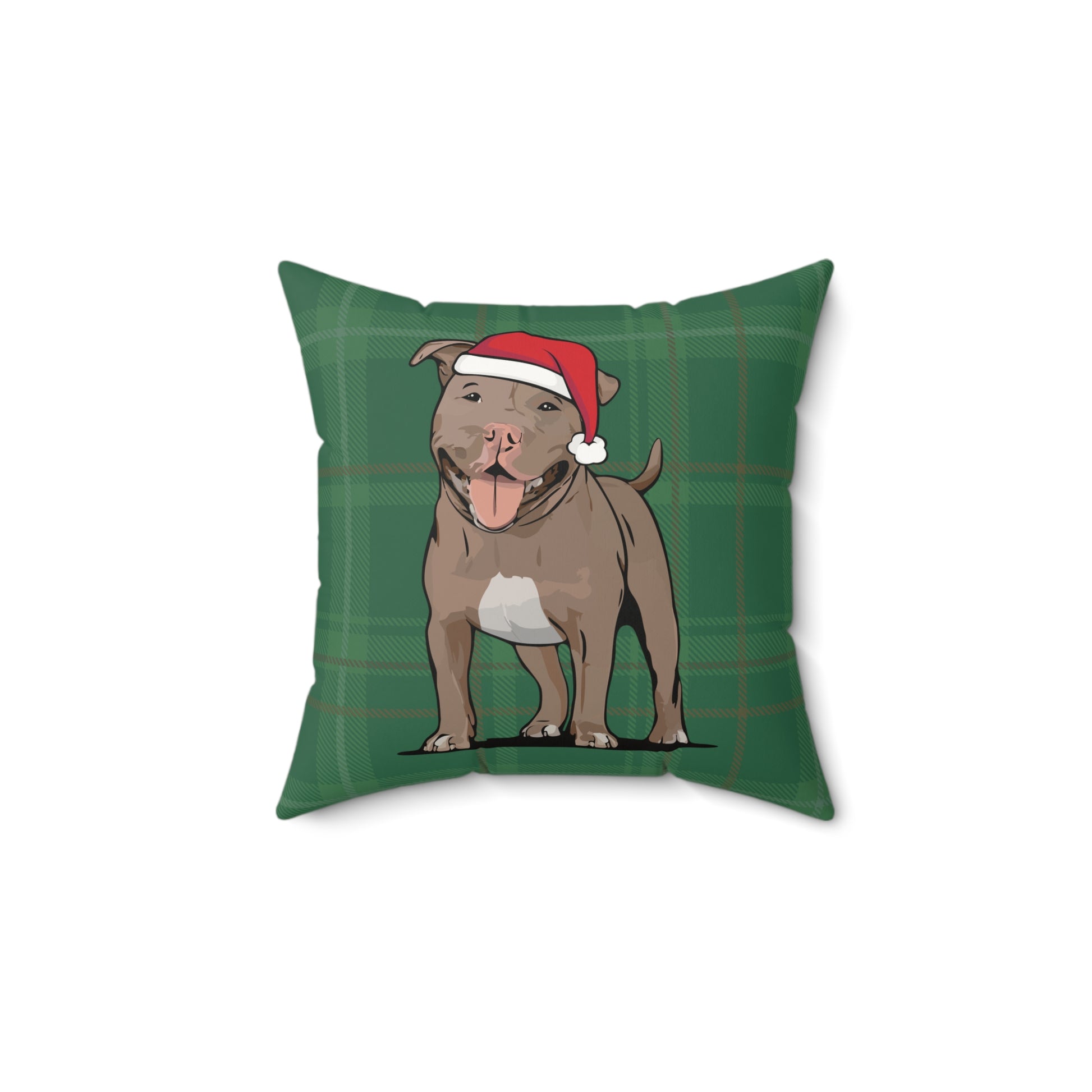 Christmas Pit Bull Dogs Throw Pillow, Brown Pitbull Terrier Dog Holiday Home Decor, Green Faux Suede Plaid Cushion Pillows, Xmas Decorations