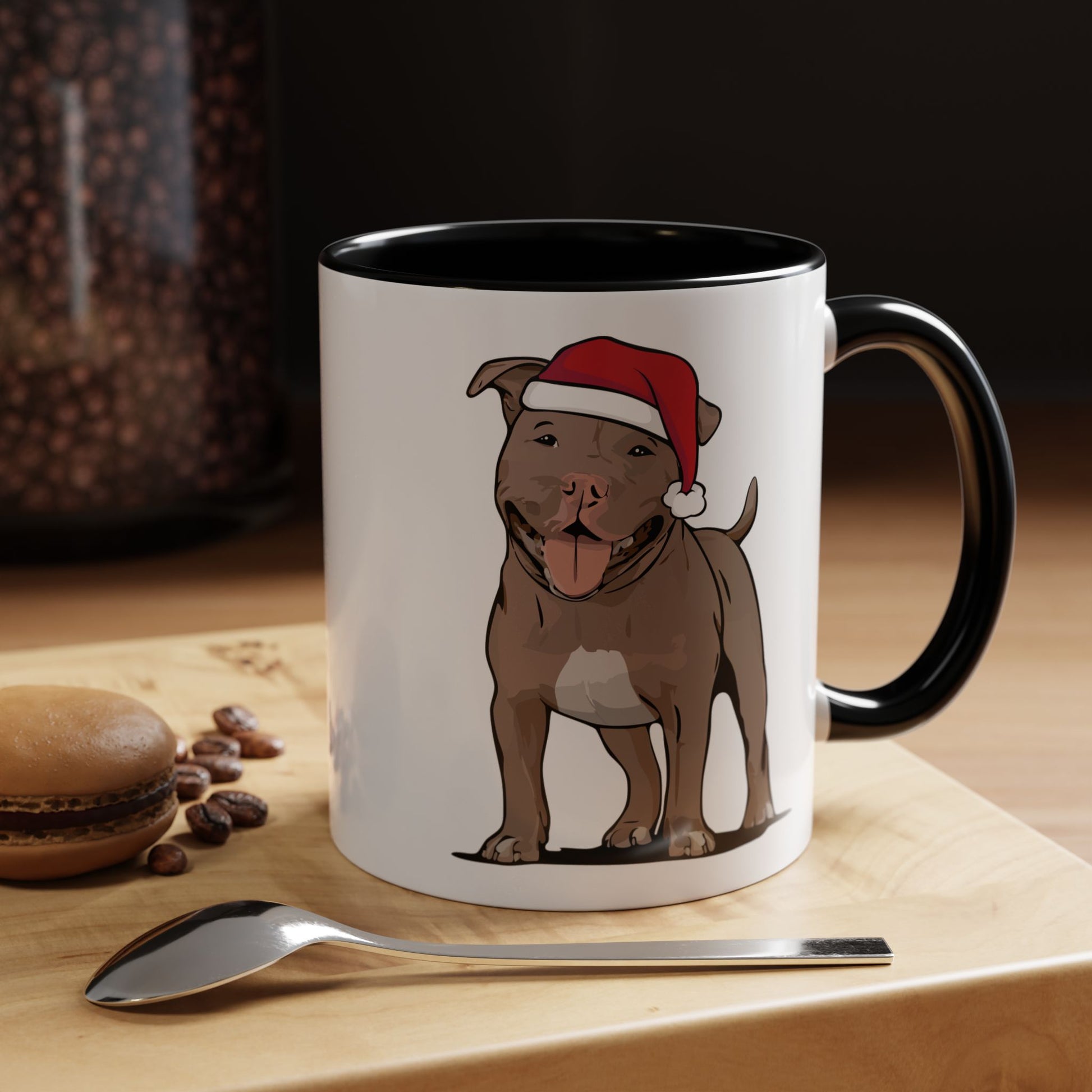 Introducing our vibrant Black or Red Accent Christmas Pitbull Dog Coffee Mug, perfect for bringing both holiday joy and puppy personality to your winter morning coffee or tea routine. This eye-catching design mug features delightful Santa Pit Bull Terrier Dogs designs that capture the festive spirit of the Christmas celebration, making it an ideal holiday gift choice for pitbull owners and dog lovers and anyone looking to brighten their mornings. The glossy finish and bold color contrast will ensure it stands out in your kitchen or office space, offering a splash of fun and functional art. Suitable for cozy Christmas gatherings or as a thoughtful gift during holidays, it's a wonderful accessory for your coffee or tea. Enjoy the warmth of your favorite beverage while adding a cheerful touch to your day!