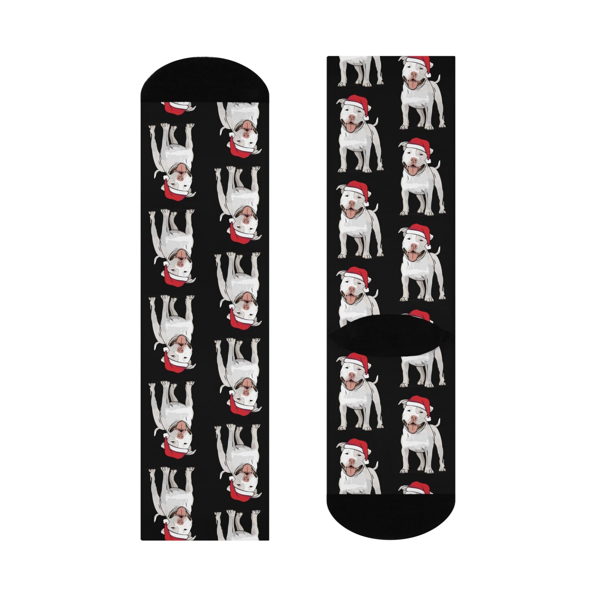 Step into comfort and style with these eye-catching Christmas Santa Pitbull Dog Novelty Crew Socks, perfect for any casual holiday outing or cozy winter day at home. Featuring a delightful all-over pit bull dogs in Santa hats print, these cheery Christmas socks bring a fun, playful vibe to your seasonal holiday wardrobe. Whether you're lounging, running errands, or heading to a festive gathering, these cushioned socks will keep your feet feeling snug and supported. Ideal Christmas gift for dog lovers, pet owners, or anyone who cherishes a unique and festive fashion statement. Perfect for gifting during the holidays, just to brighten someone’s day, these socks make a great addition to any casual outfit or as a quirky stocking stuffer. Embrace fun, comfort, and creativity with every step!