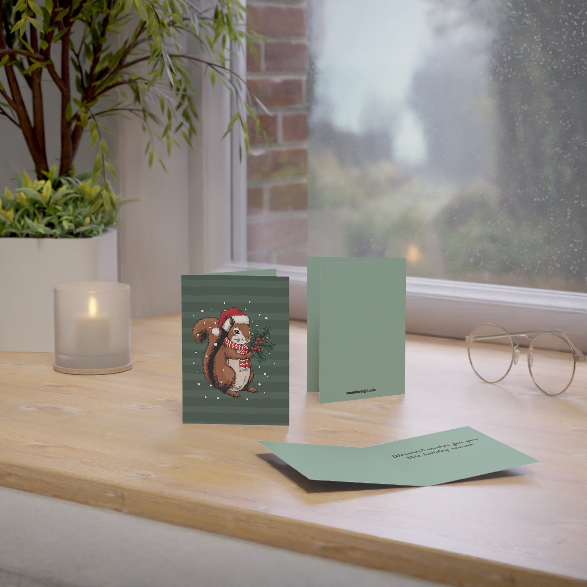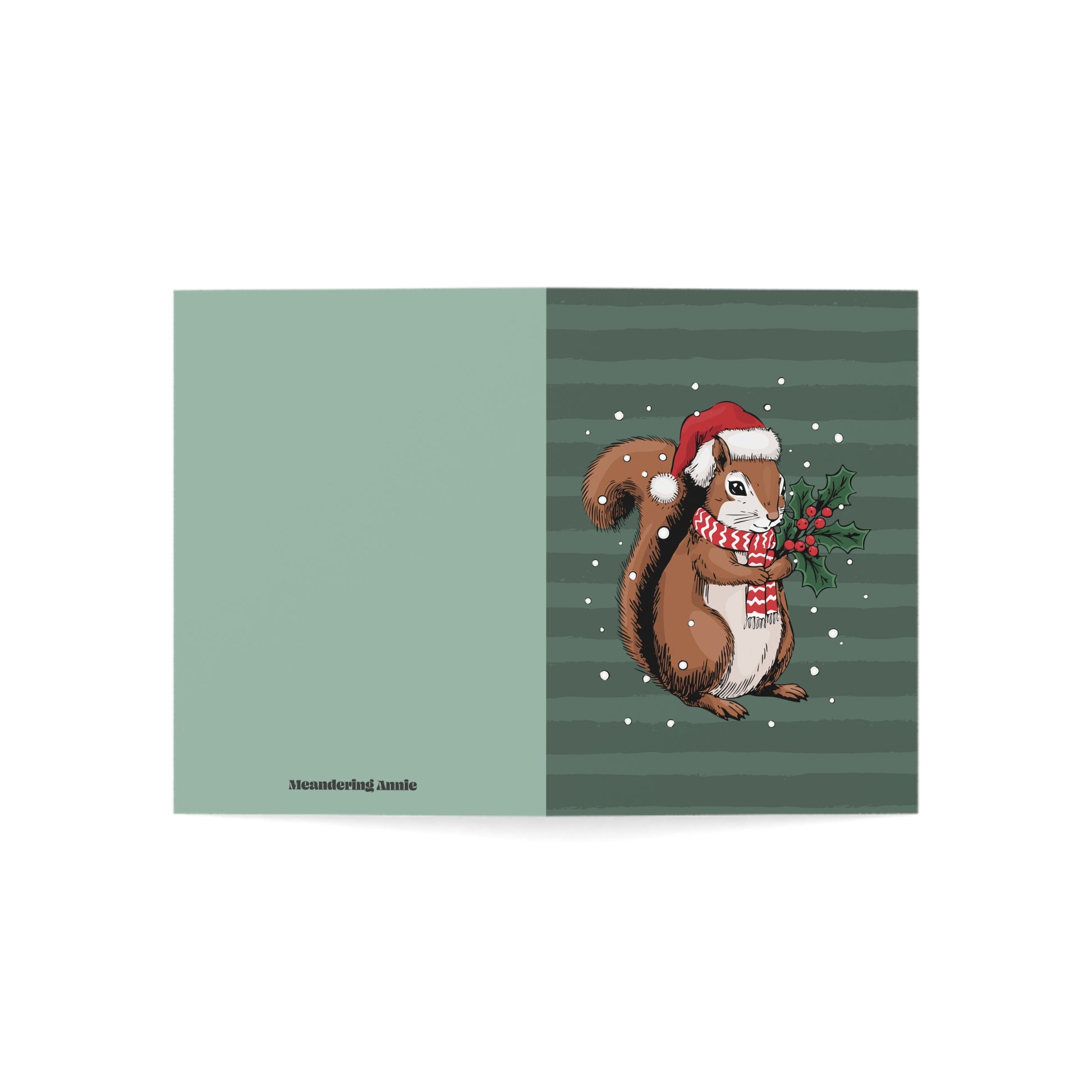 Christmas Squirrel Greeting Cards, Holiday Card 10, 30, 50 Pack + Envelopes Cute Winter Squirrels Artwork