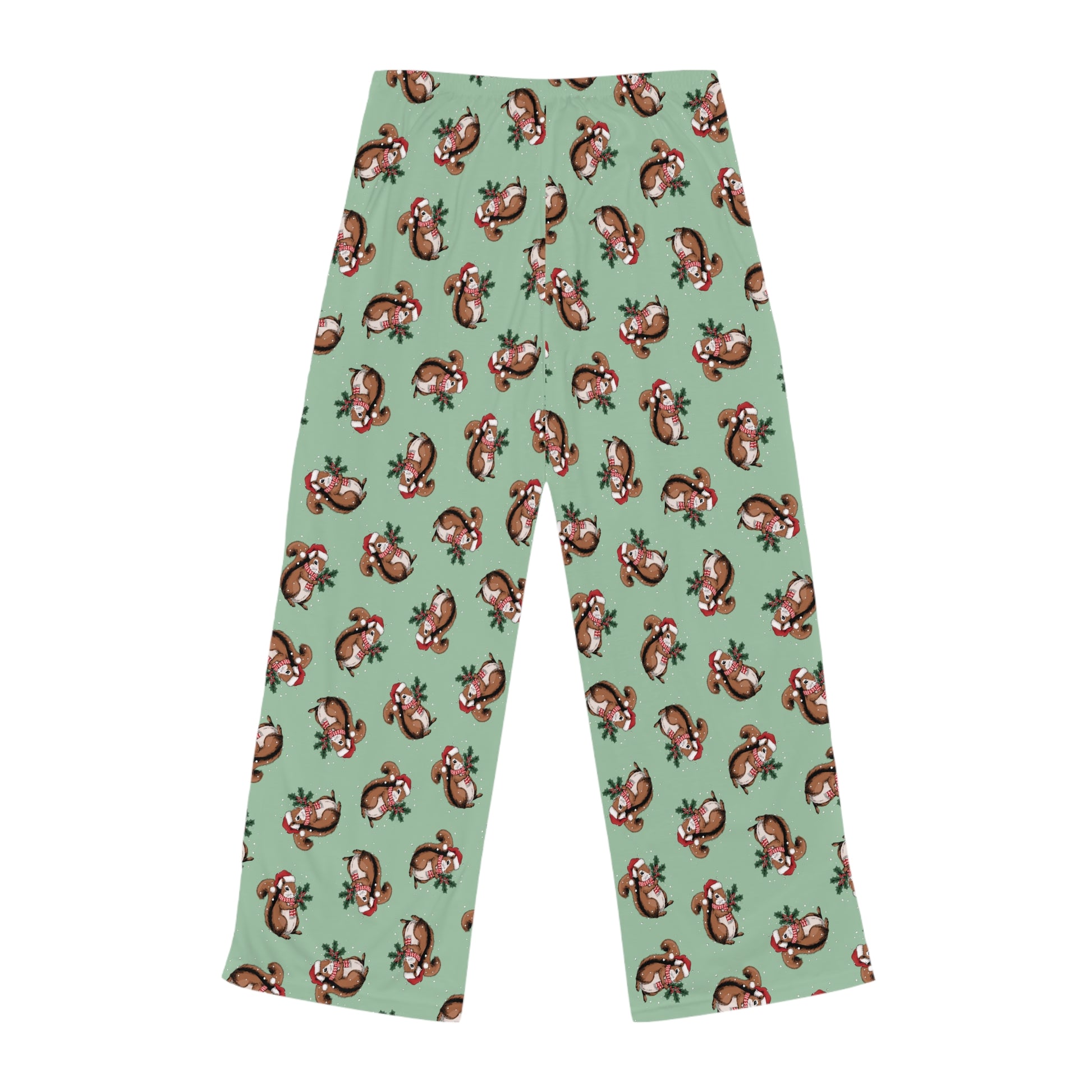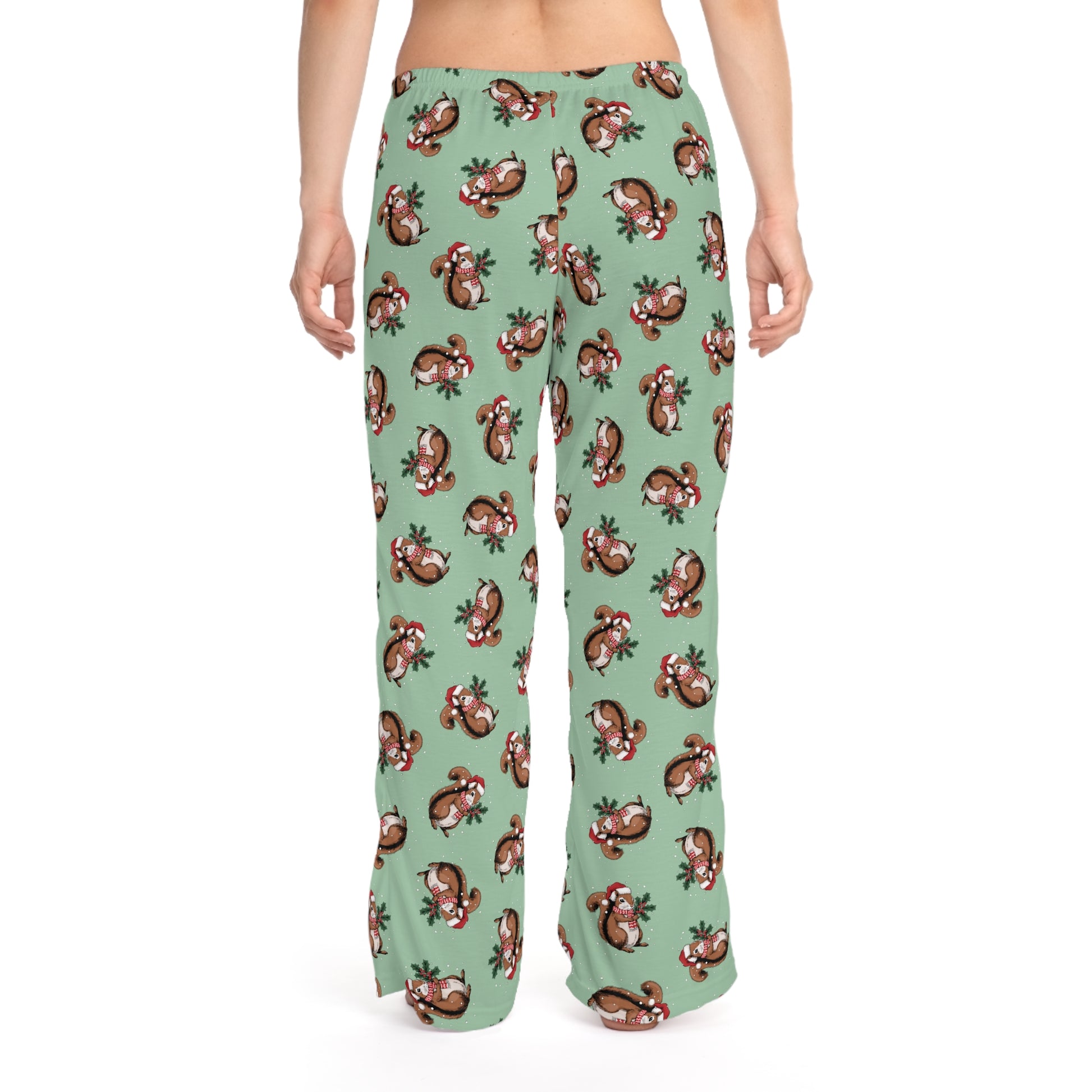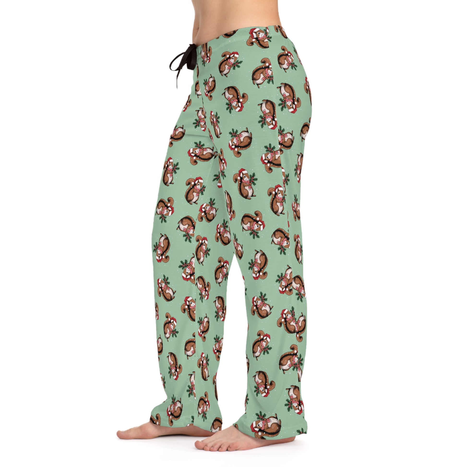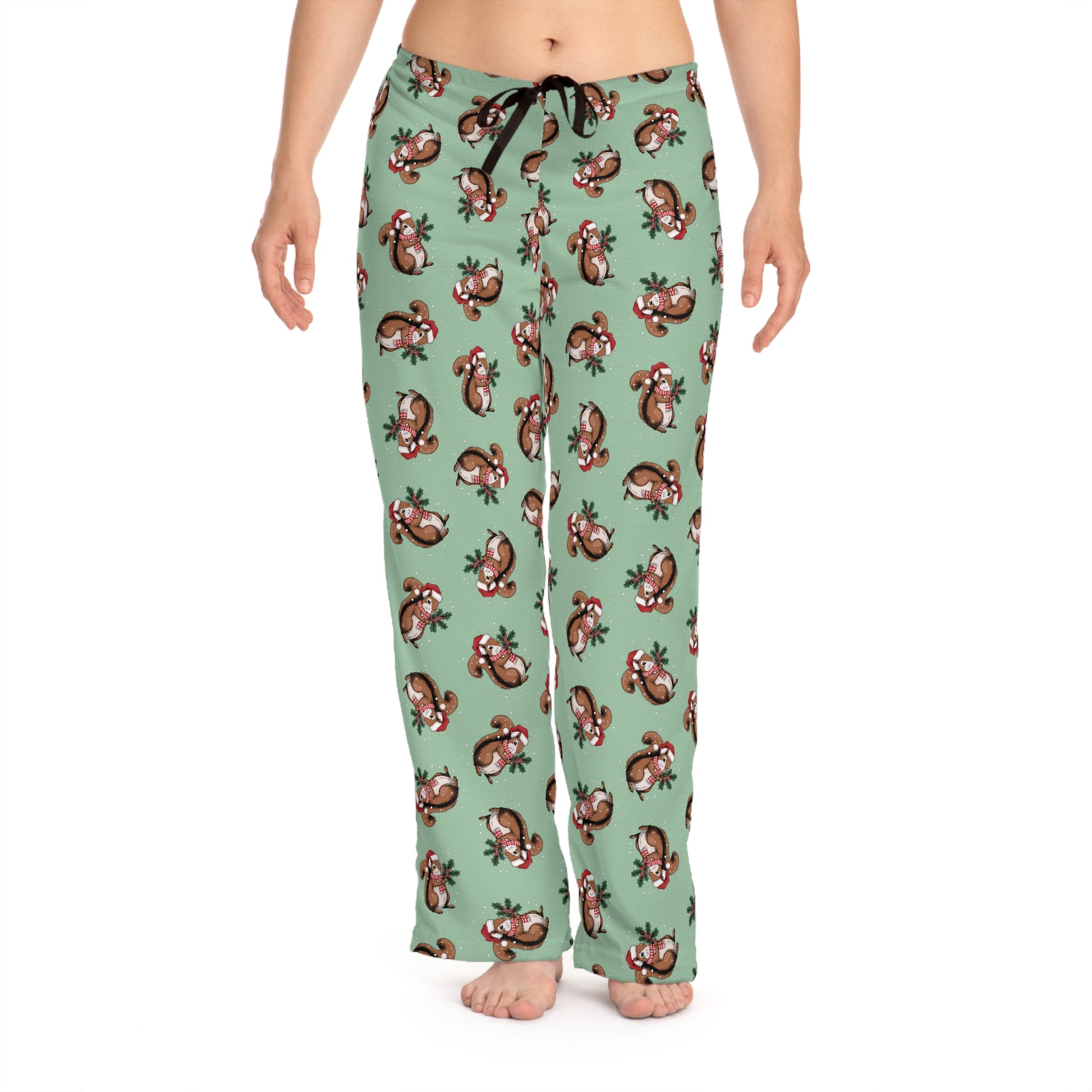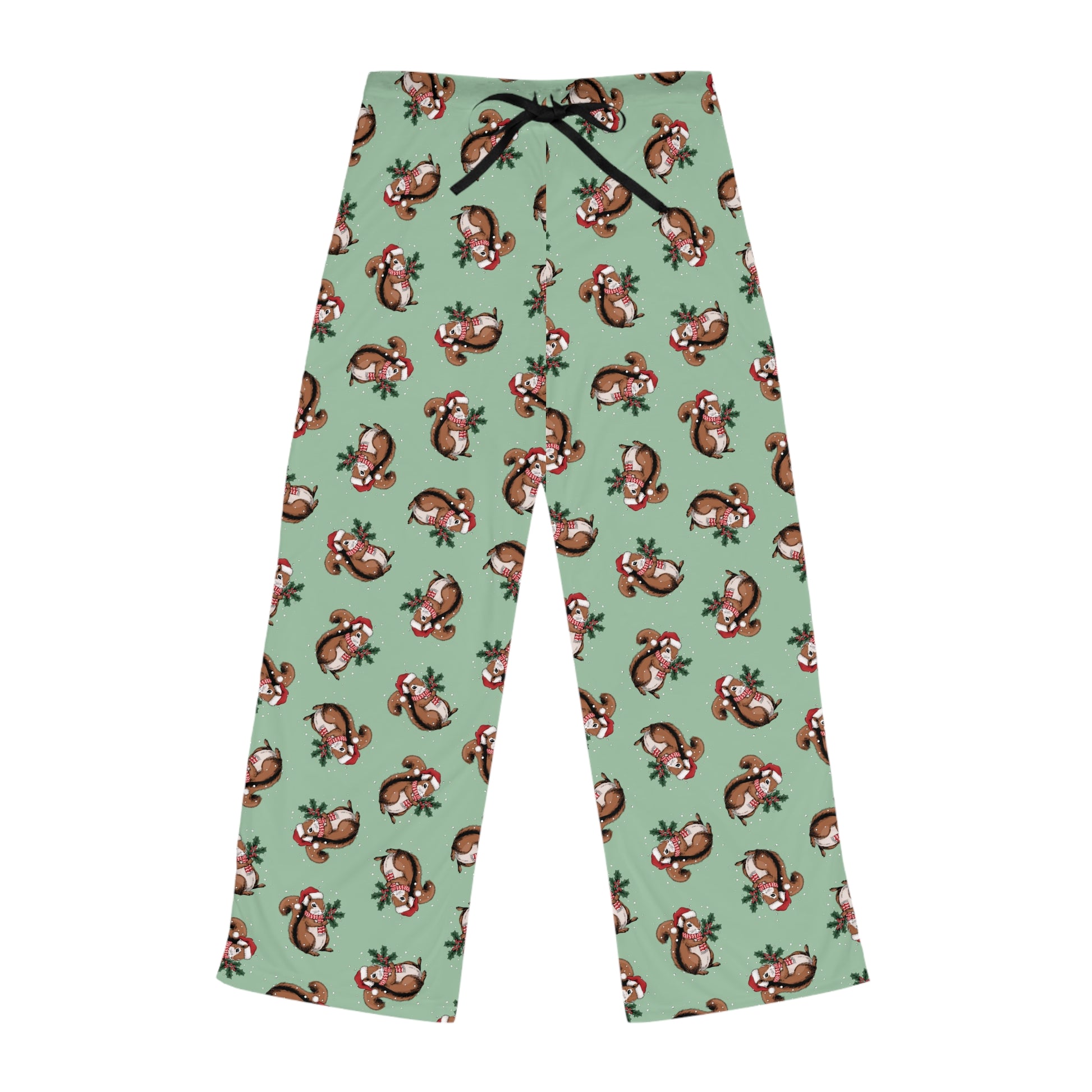 Christmas Squirrel Women's Pajama Pants, Festive Holiday Xmas Squirrels In Santa Hat Comfy Drawstring Pajamas, Cozy Winter Pajama Bottoms