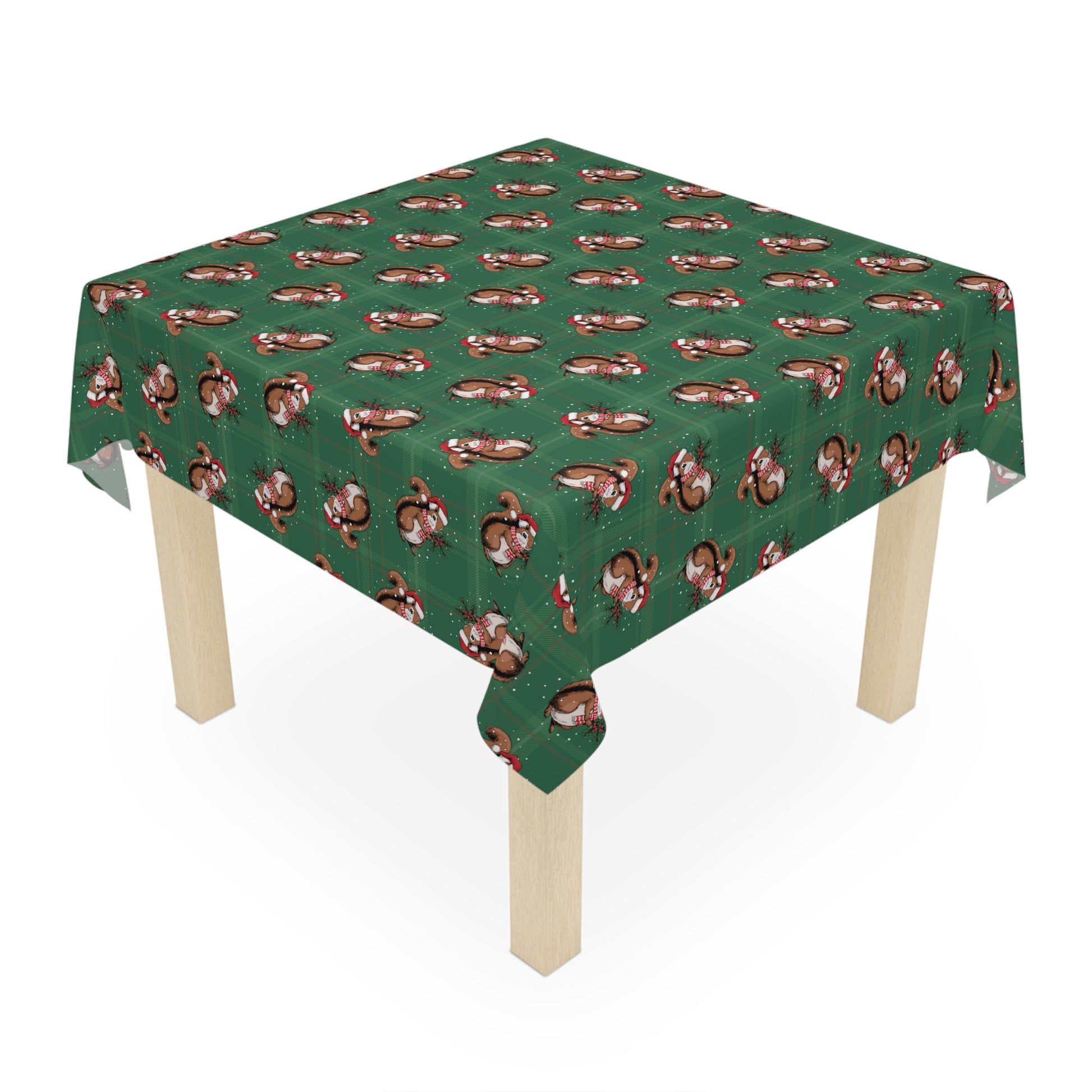 Christmas Squirrels Tablecloth, Green Plaid Holiday Santa Squirrel Table Cloth, Festive Home Decor, Winter Party Dining Tablecloths