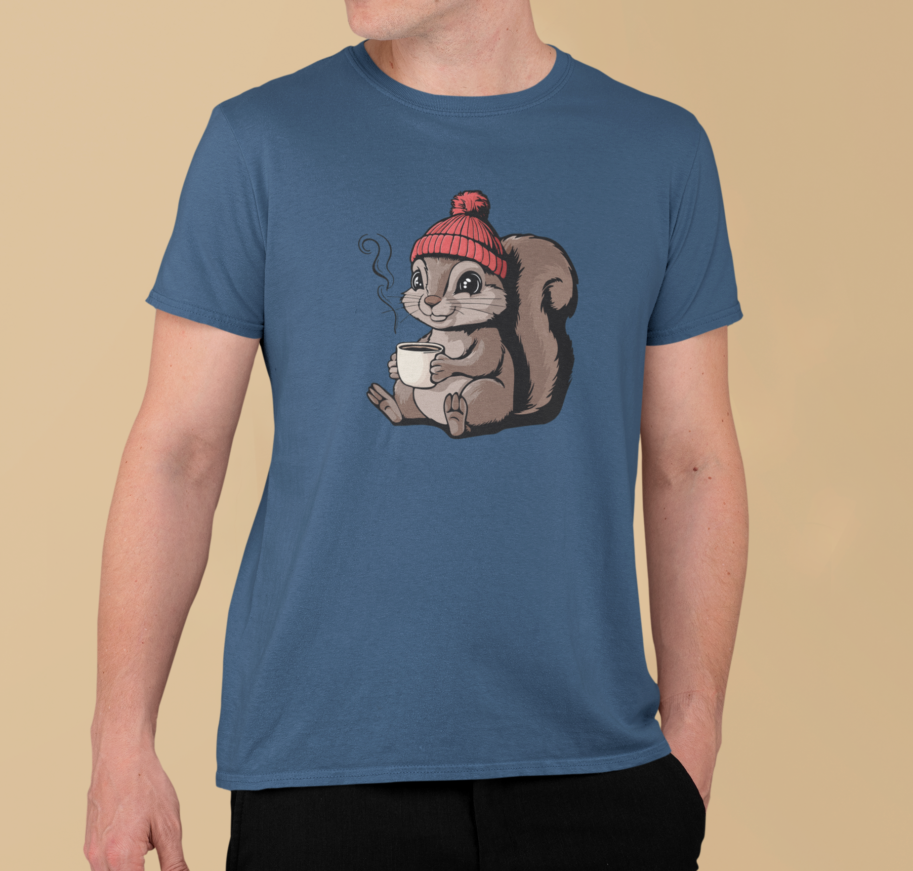 The Squirrel in Beanie with Cup Of Coffee Graphic Print soft-style t-shirt puts a new spin on casual comfort. Made from very soft materials, this tee is 100% cotton for solid colors. Heather colors and sports grey include polyester. The shoulders have twill tape for improved durability. There are no side seams. The collar is made with ribbed knitting to prevent curling damage. Makes a cute outfit for fall or a fun gift for a squirrel lover in your life. .: Made with 100% ring-spun cotton, a lightweight fabric (4.5 oz/yd² (153 g/m²)), this unisex t-shirt feels like a bliss to wear all year round. The classic fit with the crew neckline deliver a clean, versatile style that can match any occasion, whether it's formal or semi-formal. Made using ethically grown and harvested US cotton. Gildan is also a proud member of the US Cotton Trust Protocol ensuring ethical and sustainable means of production. Fabric blends: Heather colors - 35% ring-spun cotton, 65% polyester; Sport Grey and Antique colors - 90% cotton, 10% polyester, Graphite Heather - 50% ring-spun cotton, 50% polyester