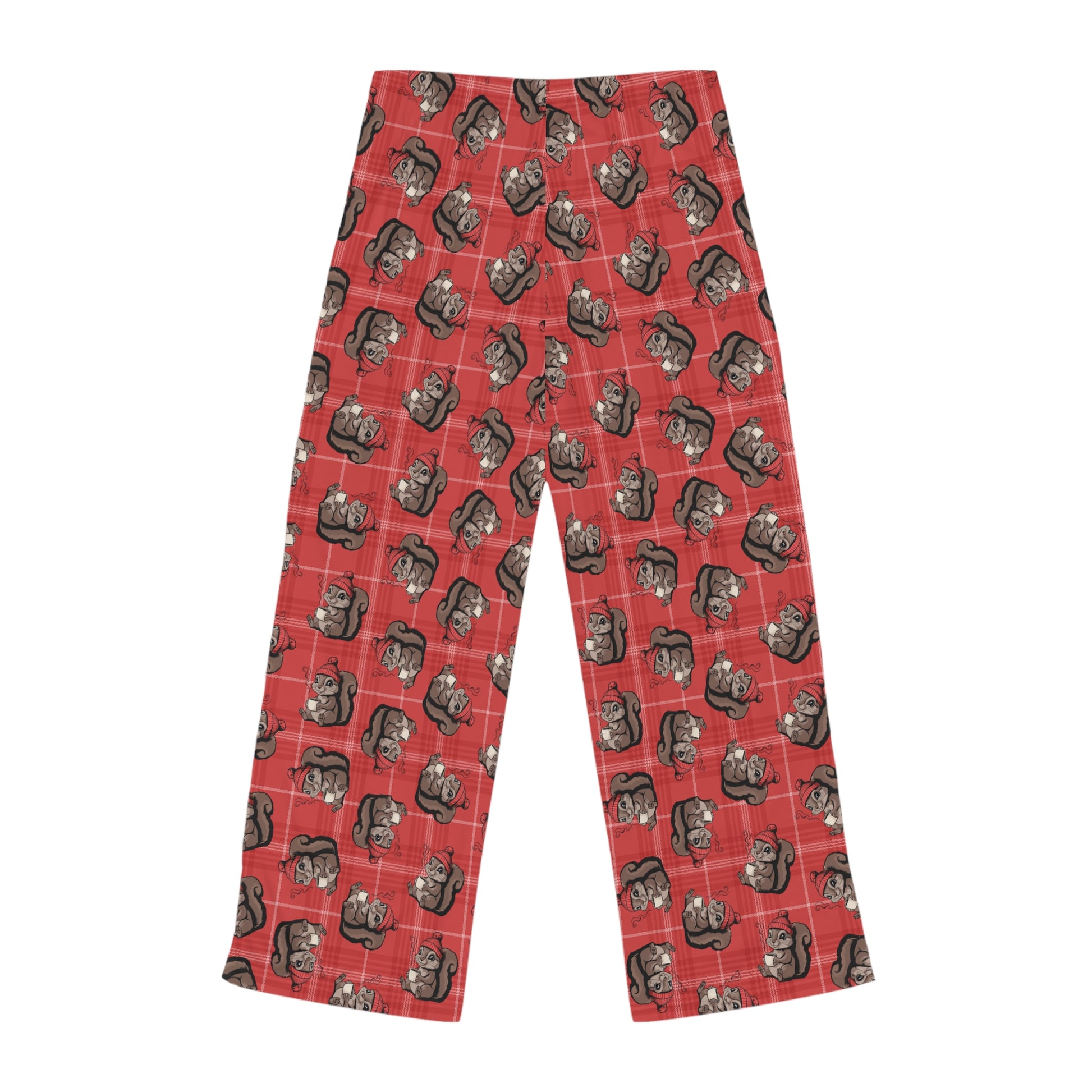 Cozy Squirrels Women's Pajama Pants, Squirrel Red Plaid PJ Bottoms, Fall Winter Loungewear, Matching Christmas Holiday Sleepwear