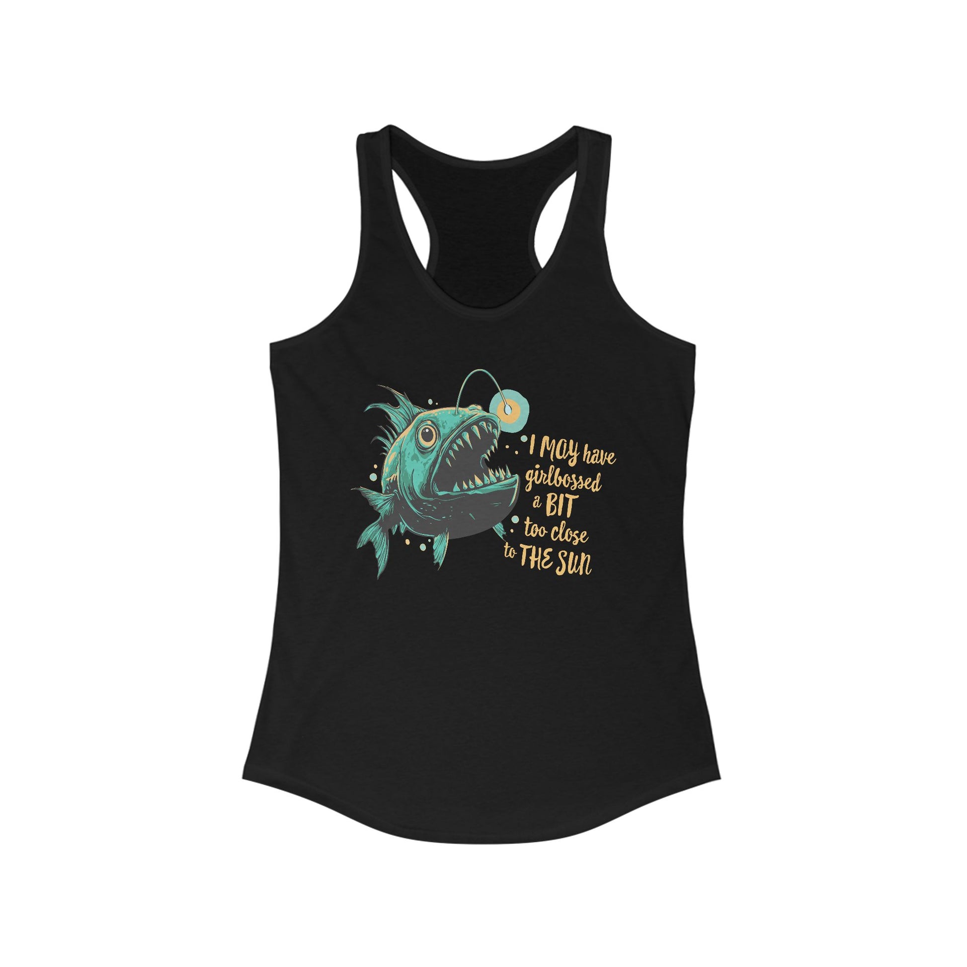 Deep Sea Anglerfish Girlbossed Too Close To The Sun Racerback Tank Top, Angler Fish Lure Glow Graphic Sleeveless Shirt Ocean Creatures