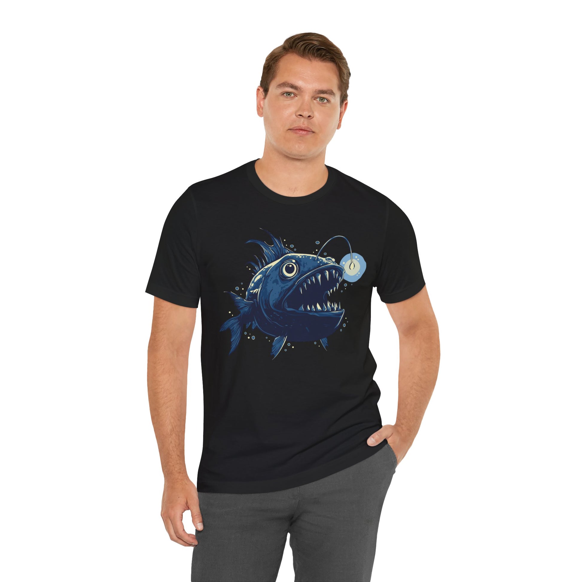 Deep Sea Anglerfish T-shirt, Ocean Life Angler Fish Bioluminescent Lure Tee - Short Sleeve Cotton Tees Mens Womens Unisex