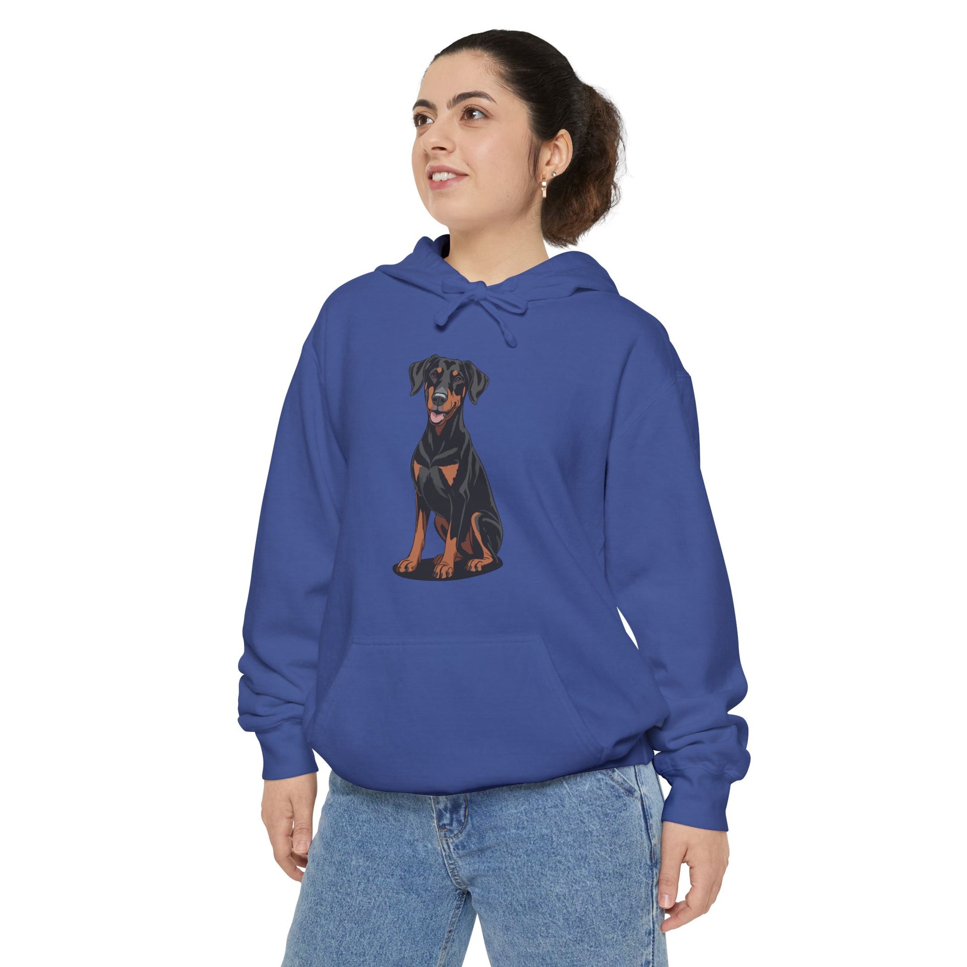 Introducing our comfortable Unisex Doberman Pinscher Dog Garment-Dyed Hoodie, perfect for doberman owners or lovers who cherish cozy moments and love to express their personal style. Crafted from a rich cotton blend, this hoodie envelops you in warmth, making it an ideal companion for chilly days or casual outings. Its relaxed fit and soft texture provide the ultimate comfort, whether you’re lounging at home, taking your furry friend to the dog park on a chilly fall day, or out with friends. This Doberman Pinscher Dogs Hoodie is particularly perfect for pet lovers, featuring a playful design that showcases your love for your furbaby. Ideal for gifting during dog-related celebrations, holidays, or simply as a treat for yourself, this hoodie is a versatile addition to your wardrobe that resonates with warmth and fun.