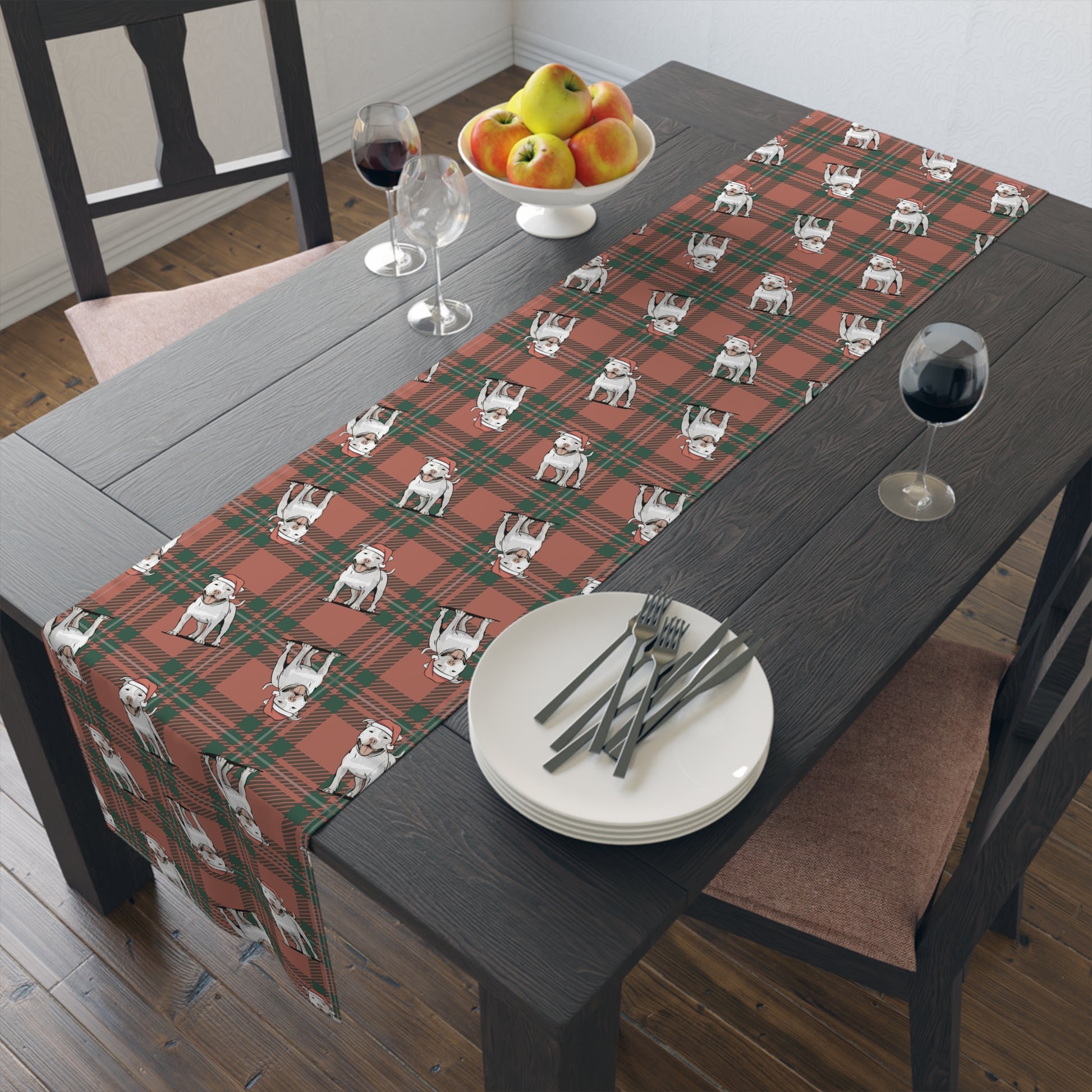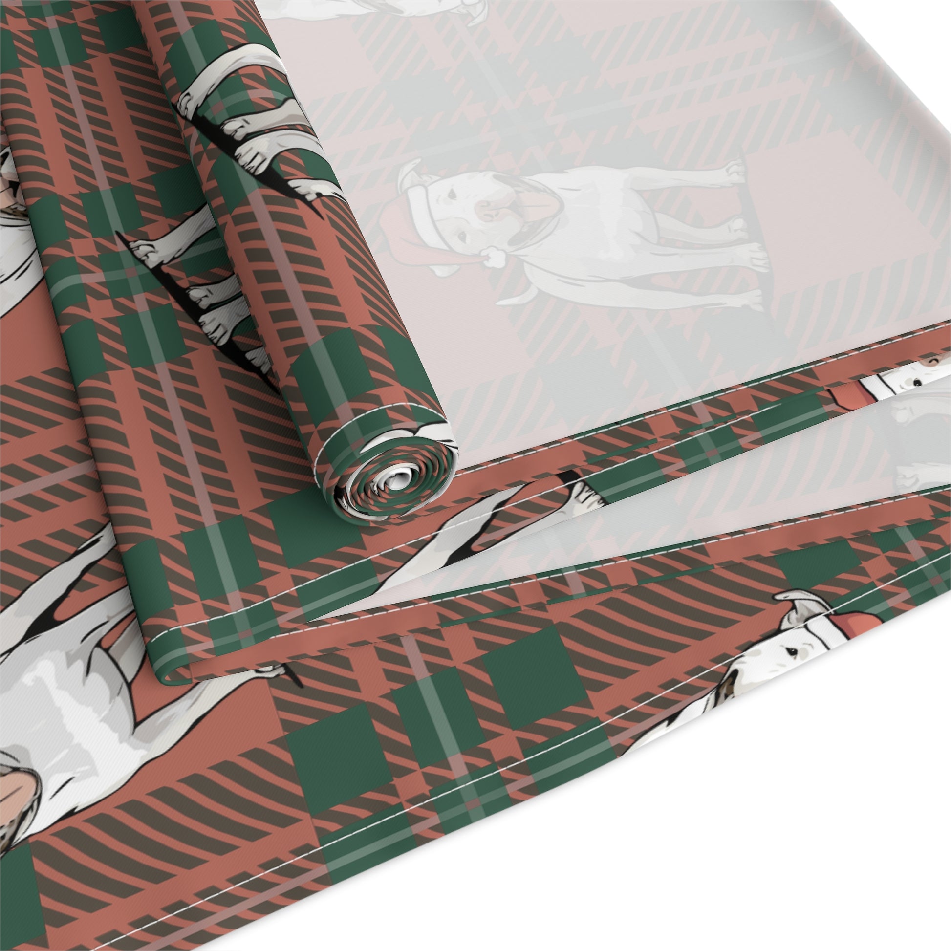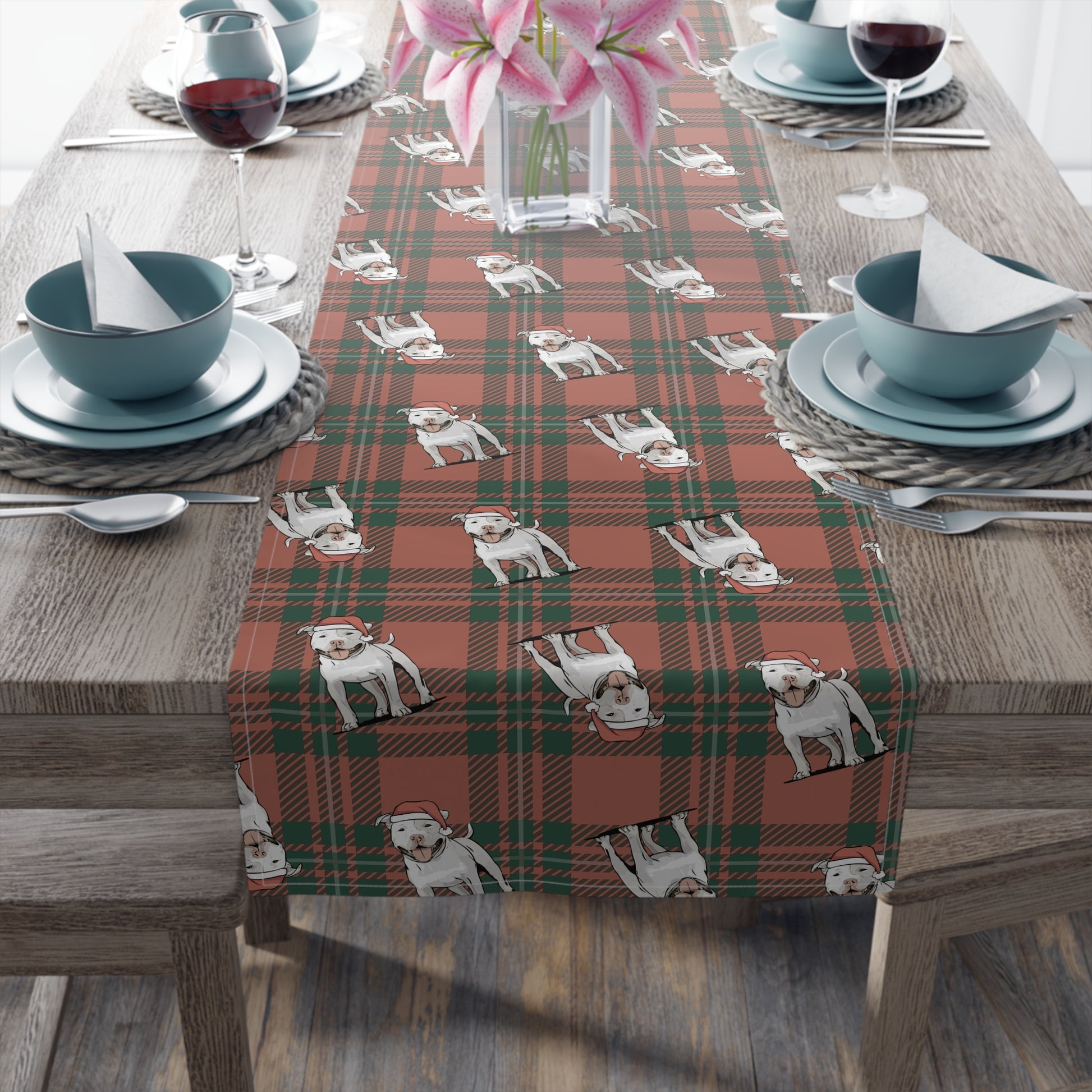 Festive American Pit Bull Terrier Dog Holiday Table Runner, Christmas Home Decor, Dining Tablecloth Linens, Plaid Table Setting Runners