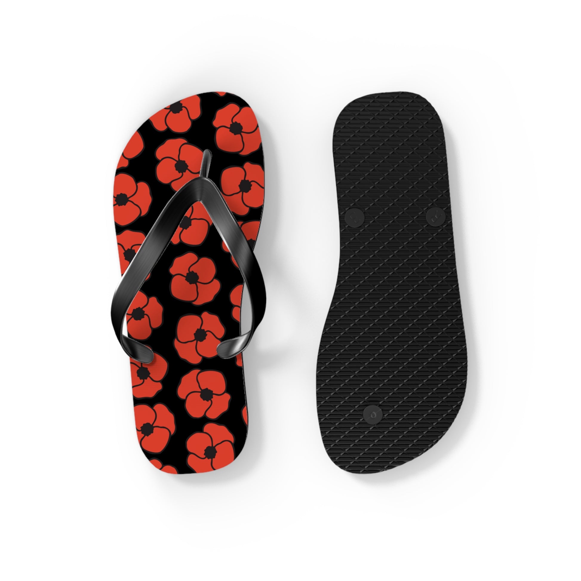 Floral Poppies Flip Flops - Poppy Flowers Spring Summer Sandals, Beach Footwear, Vacation Essentials, Outdoor Relaxation, Gift for Her
