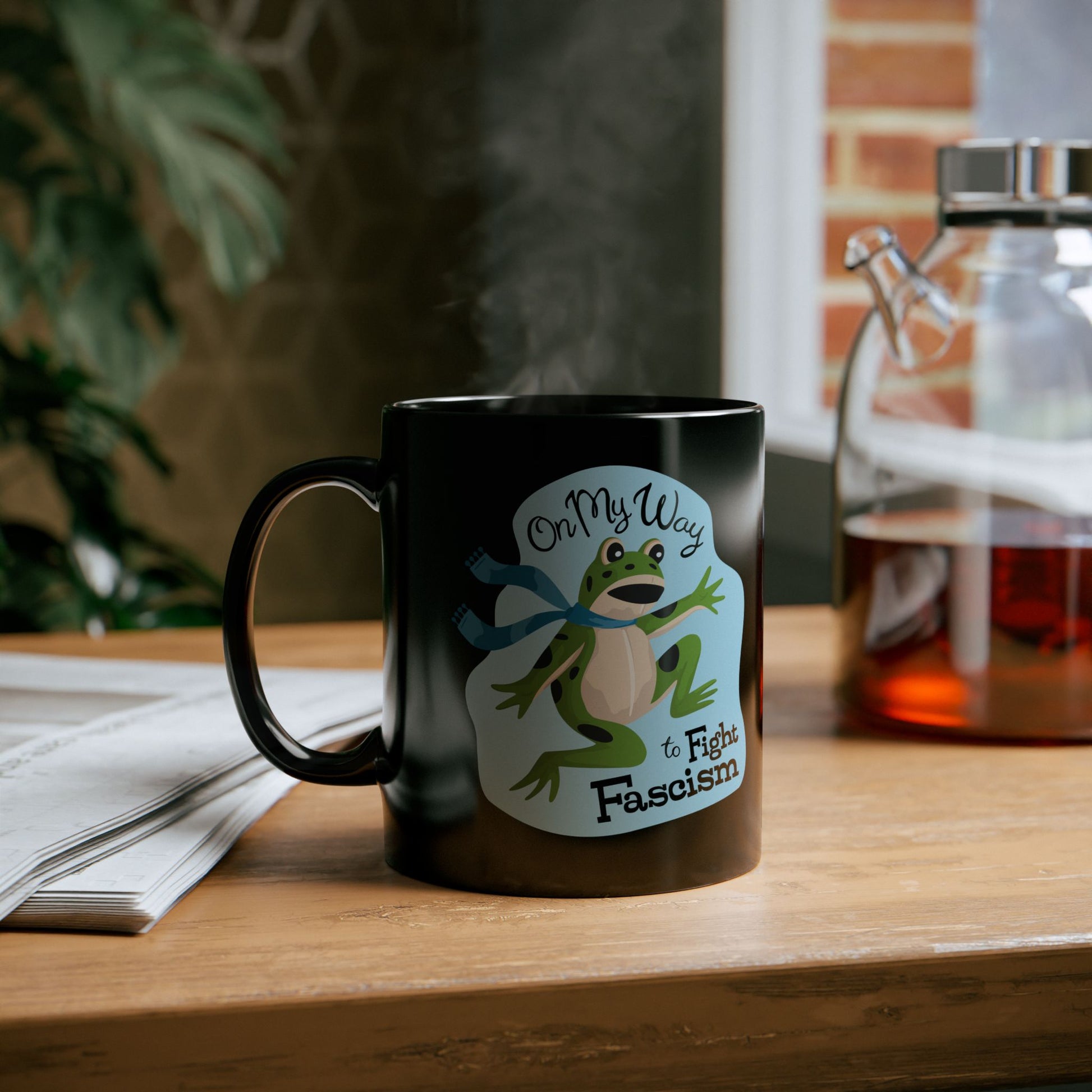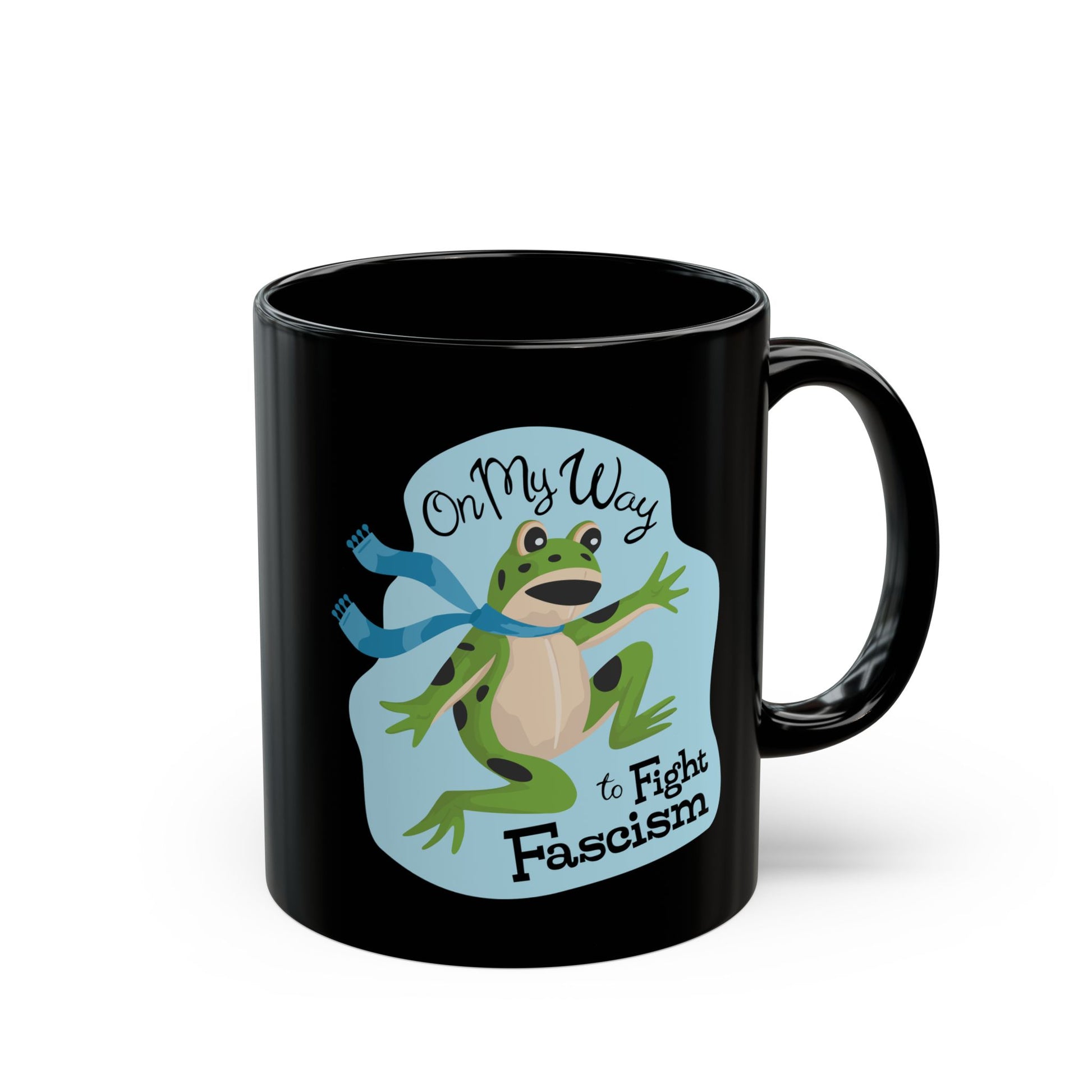 Frog Resistance Black Mug - Inflatable Frogs Costume "On My Way to Fight Fascism" Mugs, Funny Leftist Liberal Political Humor Activists Cups