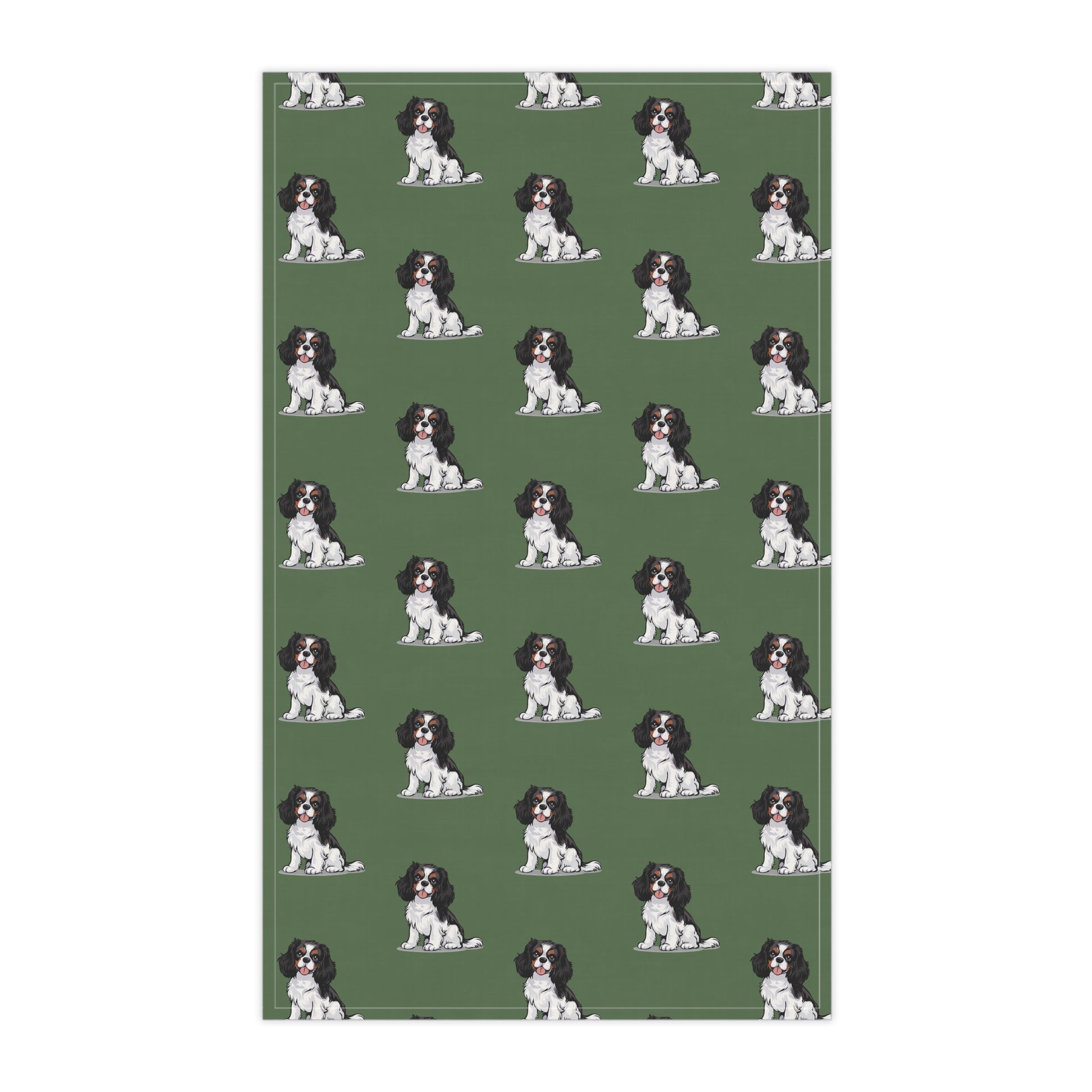 Green Cavalier King Charles Puppy Dog Tea Towel, Kitchen Hand Towels Decor Gifts, Home Accessories, Dogs Owner Gift