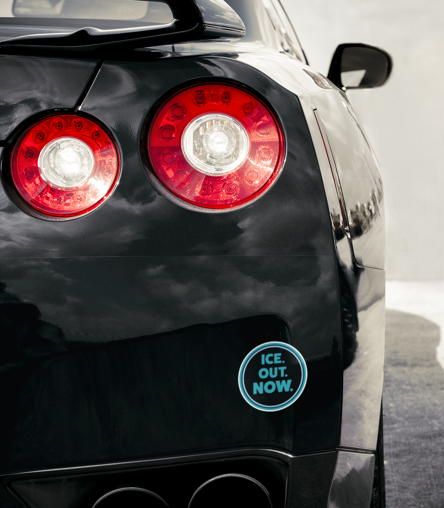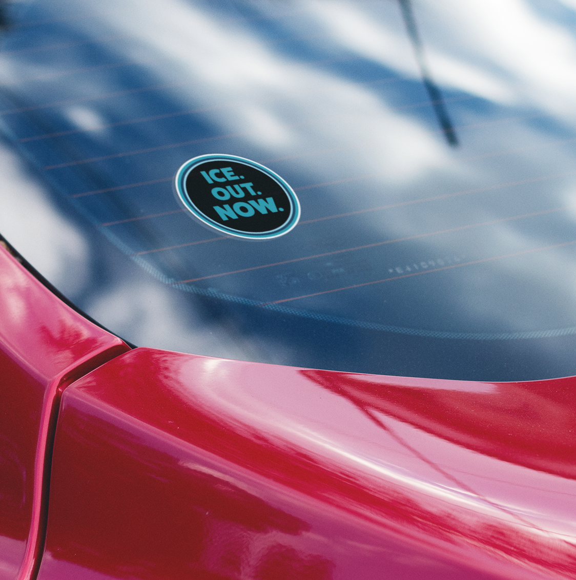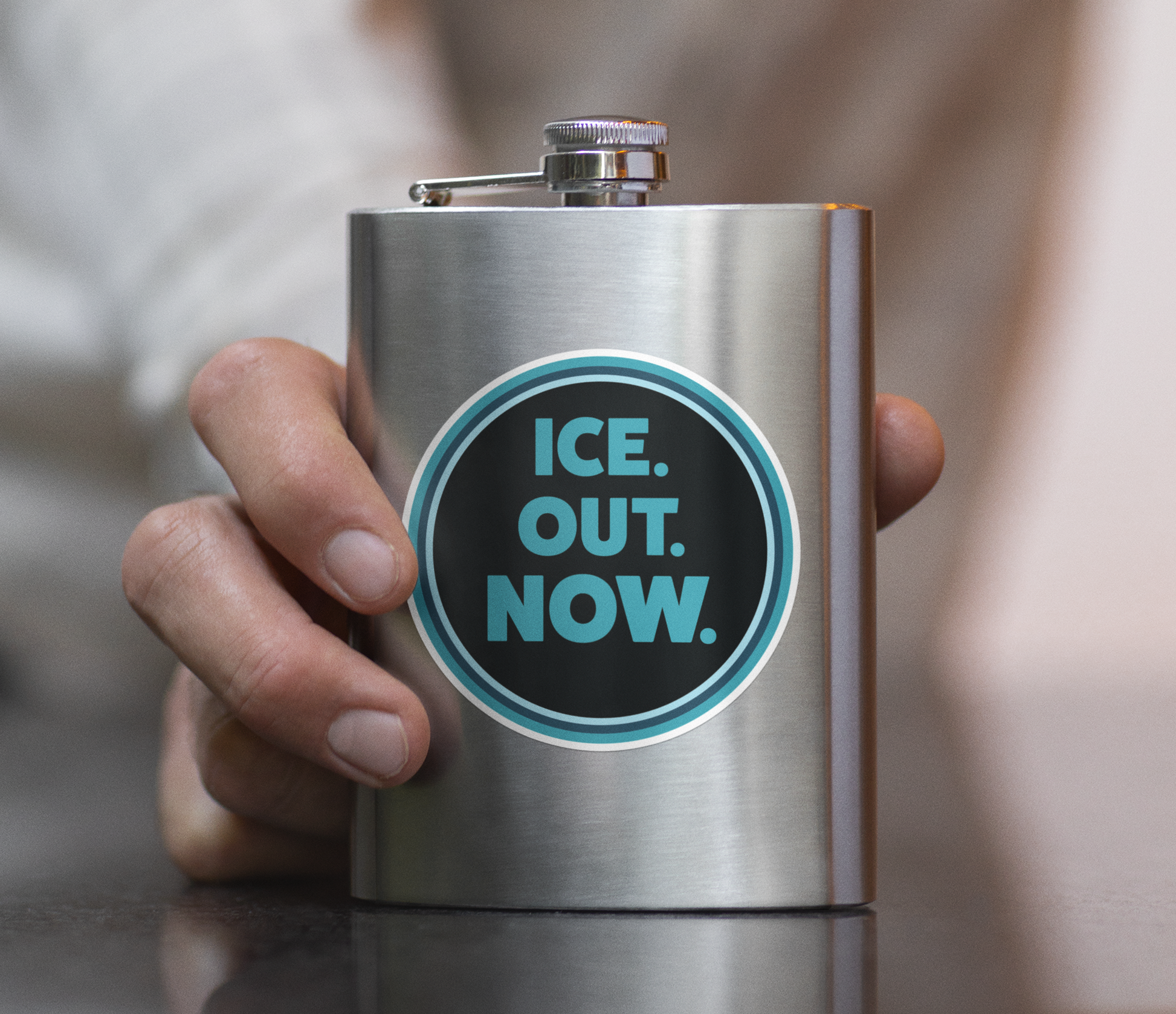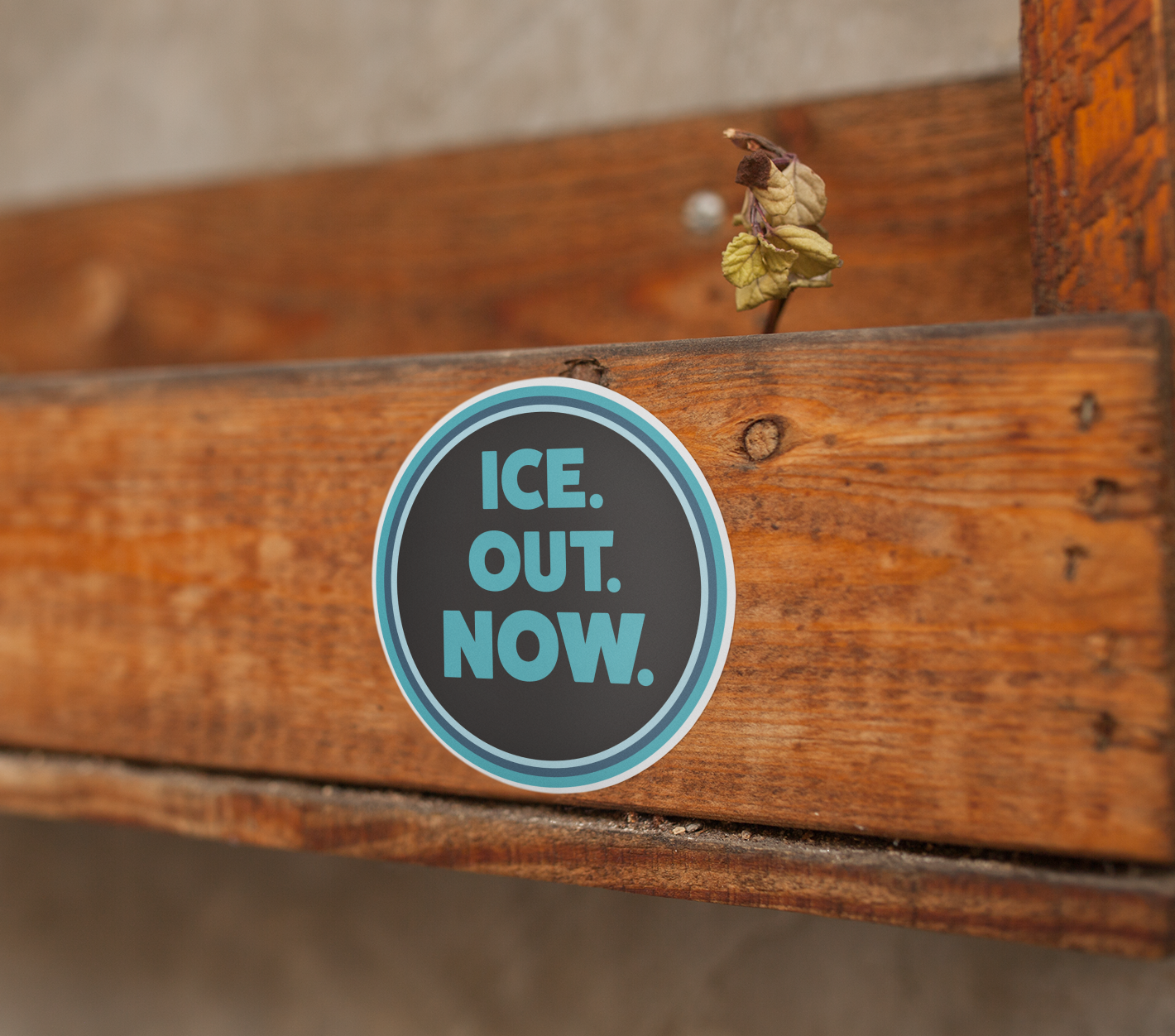 Round political sticker with the text "ICE. Out. NOW." In these stressful and uncertain times, we need to subtly (or not so subtly) make our stance known and show your support for those affected by the current situation. The perfect stickers to slap on your car or bring to hand out at the next rally, protest, march, or parade.