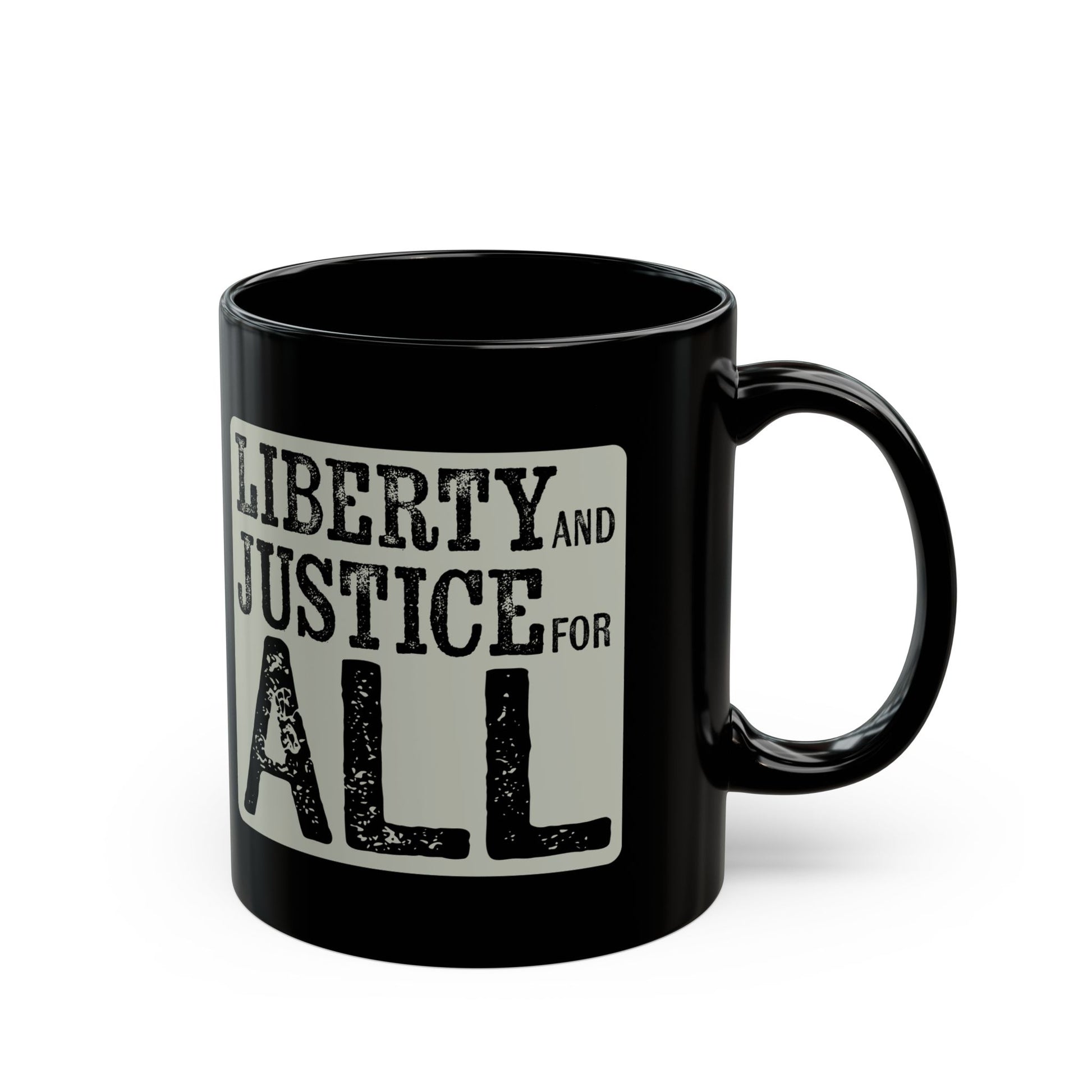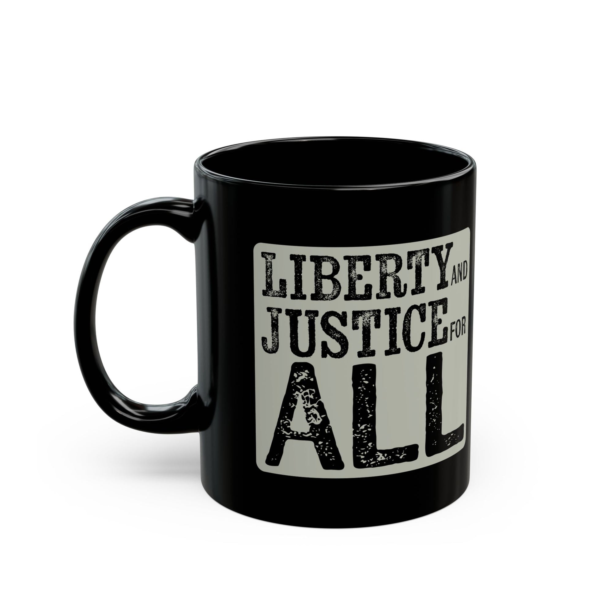 Liberty and Justice for All Mug, Black Ceramic Coffee Cup, Equality Activist Gift, Patriotic Mugs, Civil Rights Advocate Gift, 11oz