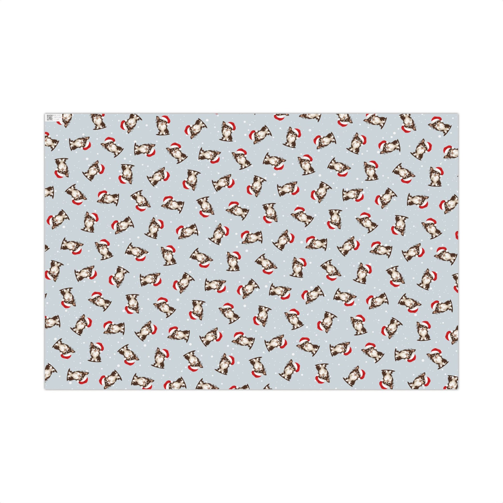 Festive holiday Christmas wrapping paper featuring a cute long haired chihuahua dog in Santa hat pattern print, perfect for adding a touch of whimsy and cheer to your gift-giving. Matte finish long coat chihuahua gift wrap is ideal for those who love animal designs and want to create a festive atmosphere during the holiday season. Relevant for Christmas, winter celebrations, and holiday gift-giving occasions. Product features - Matte finish wrapping paper. The perfect holiday wrapping paper to wrap Christmas gifts for your chihuahua owner friends and family.