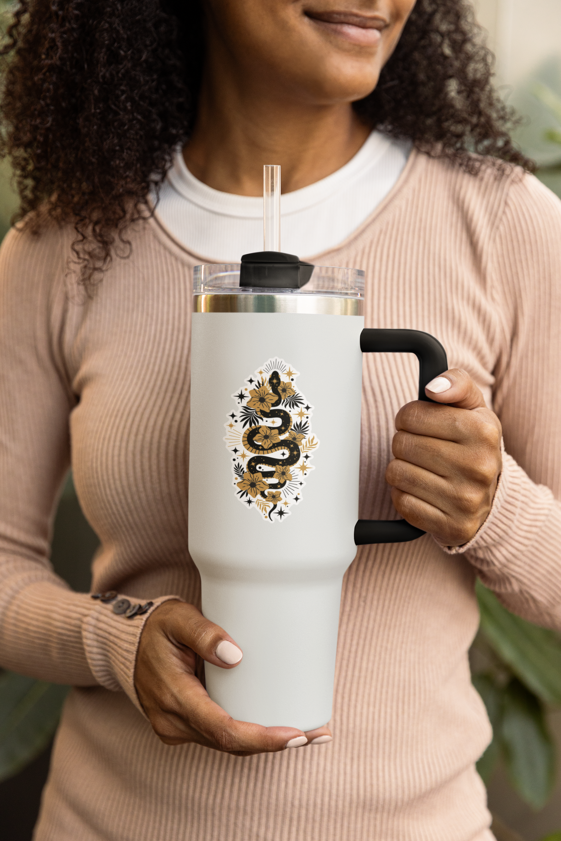 4" Mystic Gold Snake Sticker - Waterproof, Fade-Resistant Decal Stickers Boho Snakes Flowers Design