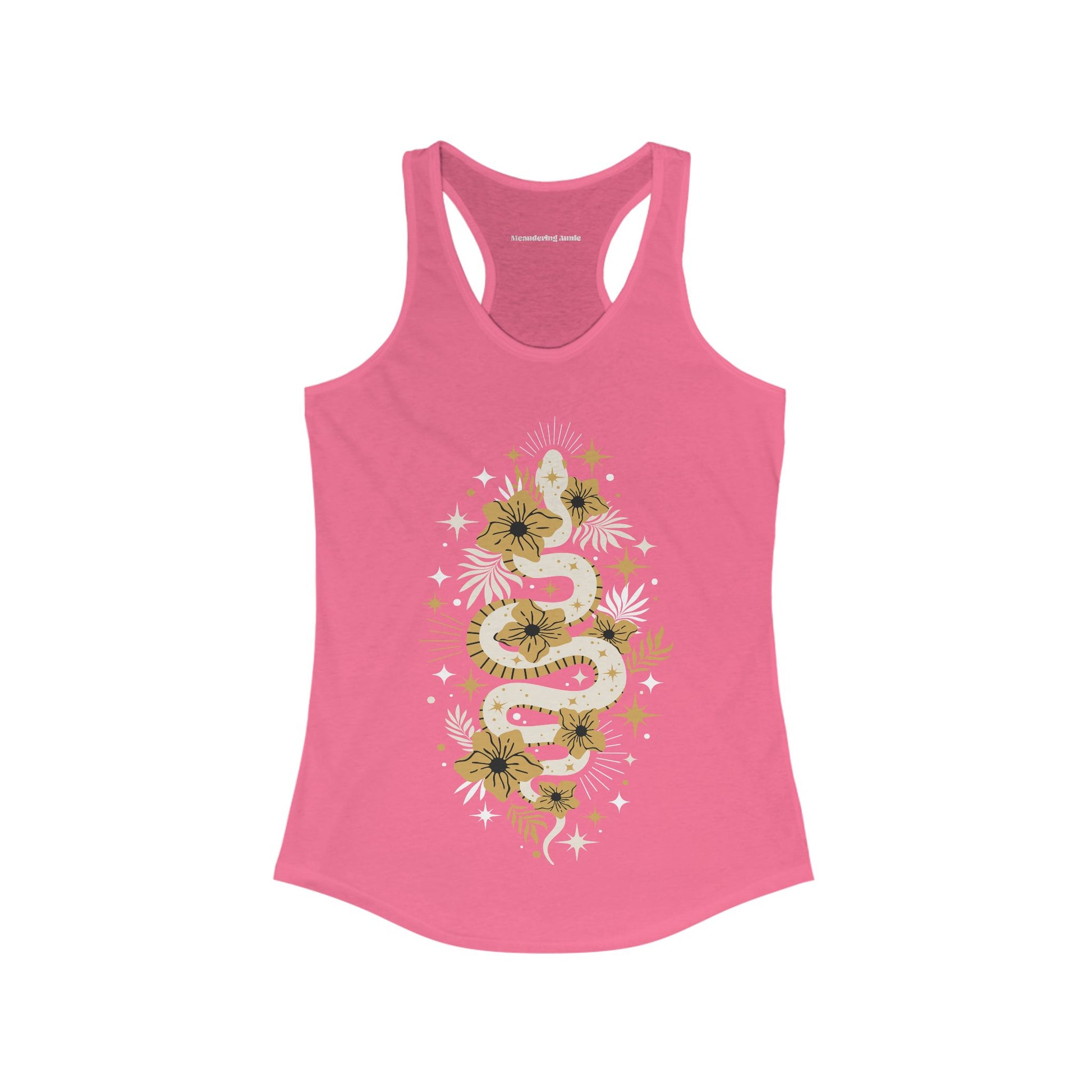 Mystic Golden Snake Women's Racerback Boho Tank Top, Bohemian Style, Festival Clothing, Yoga Top, Gift for Her, Summer Fashion