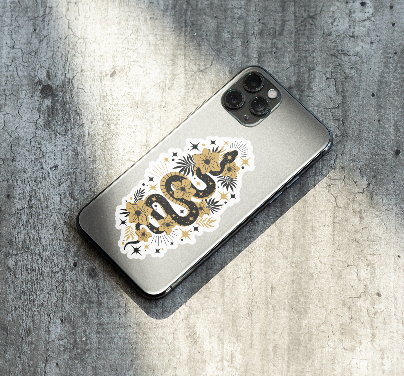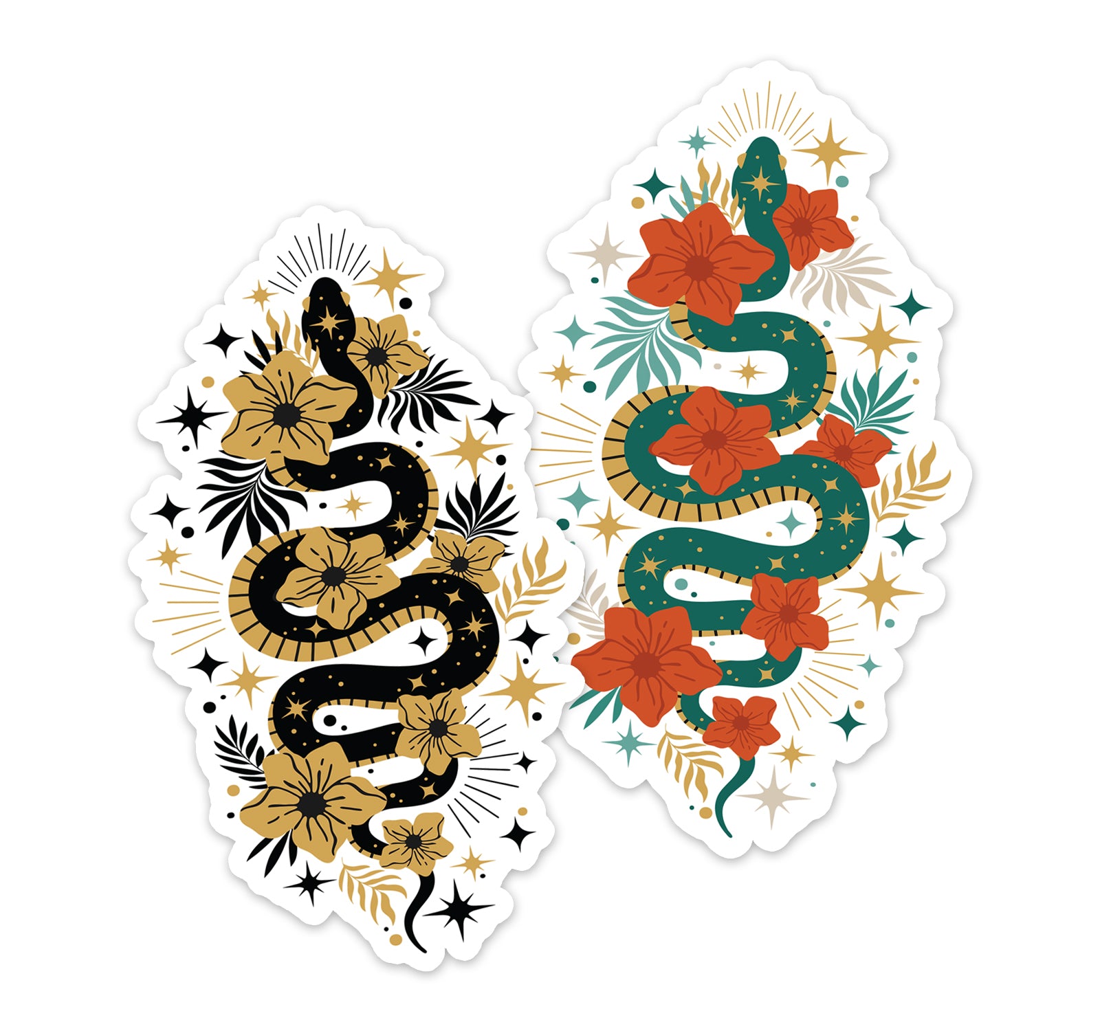 4" Mystic Snake Stickers 2 Pack - Boho Serpent Snakes & Flowers Decal Stickers