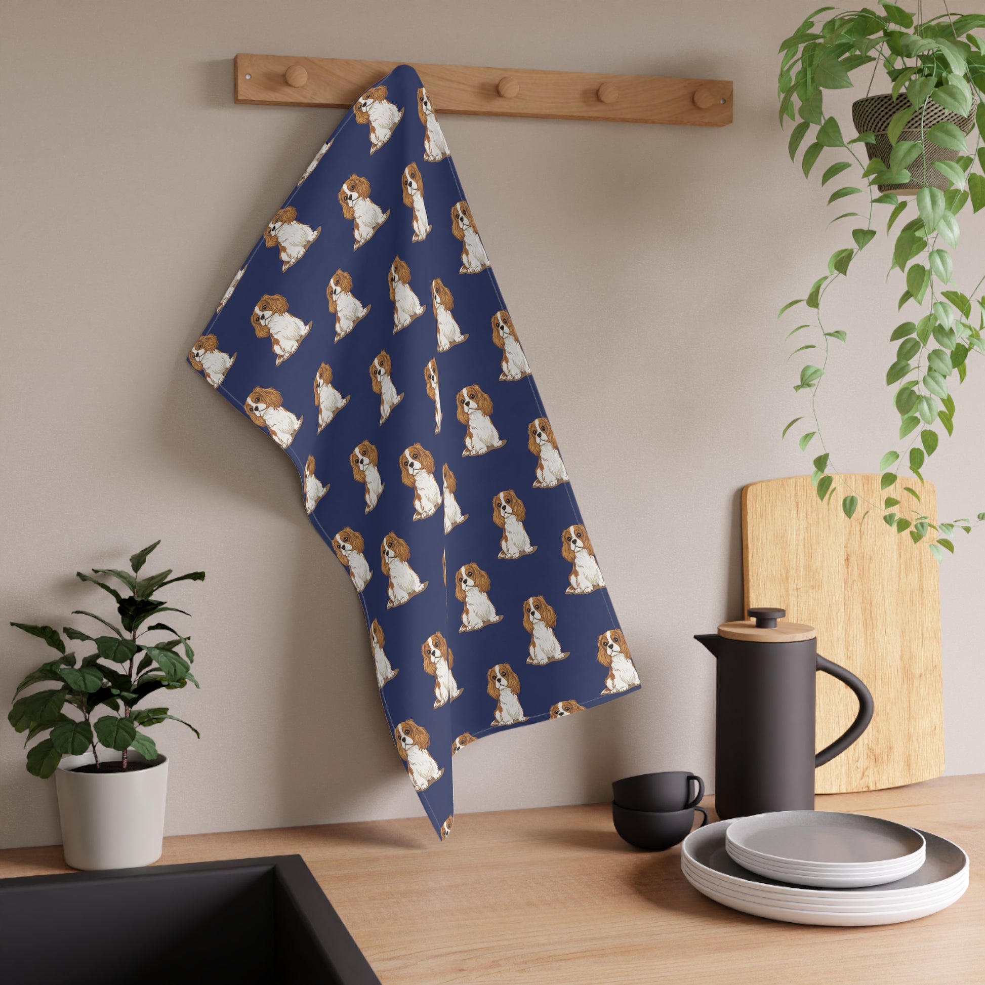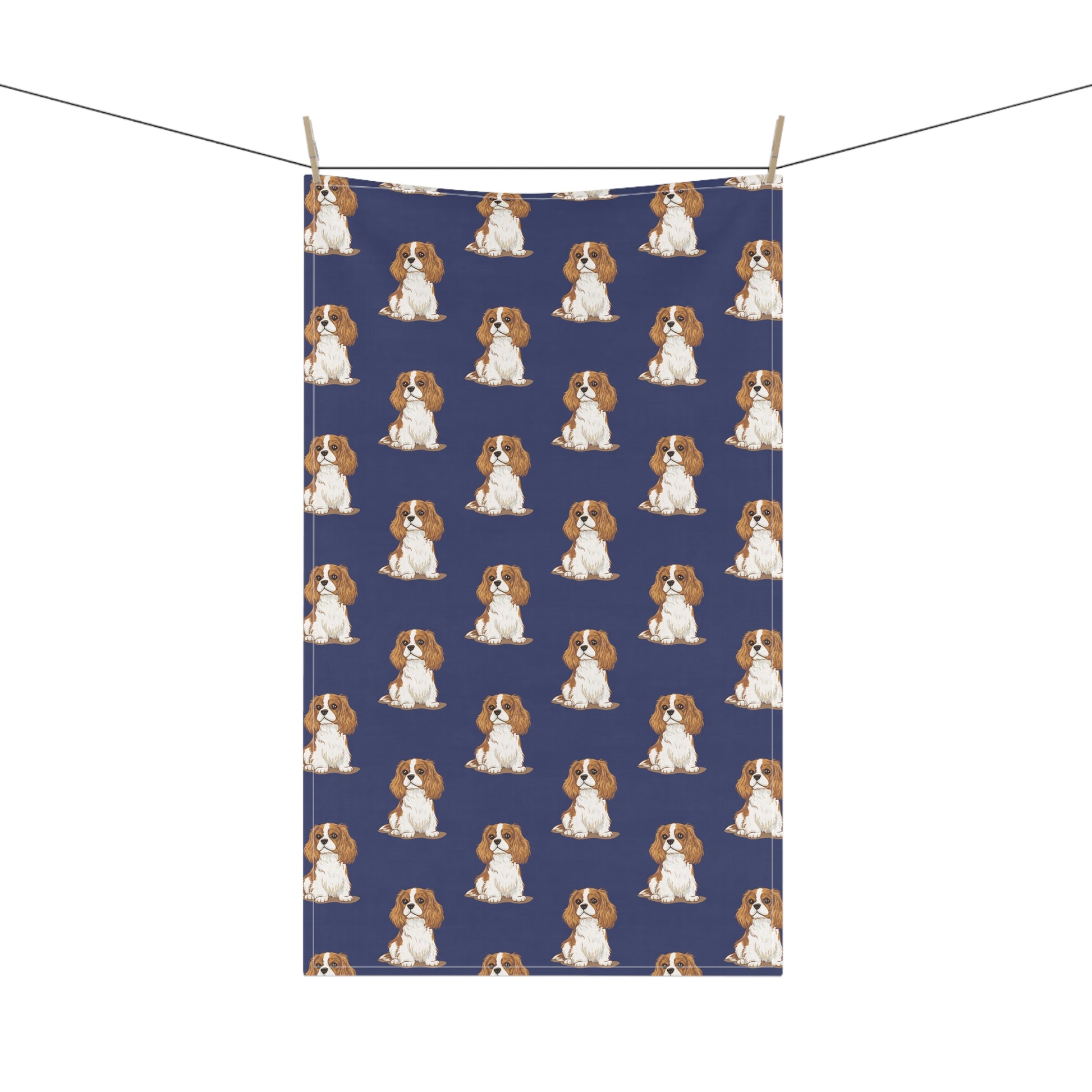 Navy Cavalier King Charles Puppy Dog Tea Towel, Kitchen Hand Towels Decor Gifts, Home Accessories Dogs Owners Gift Ideas
