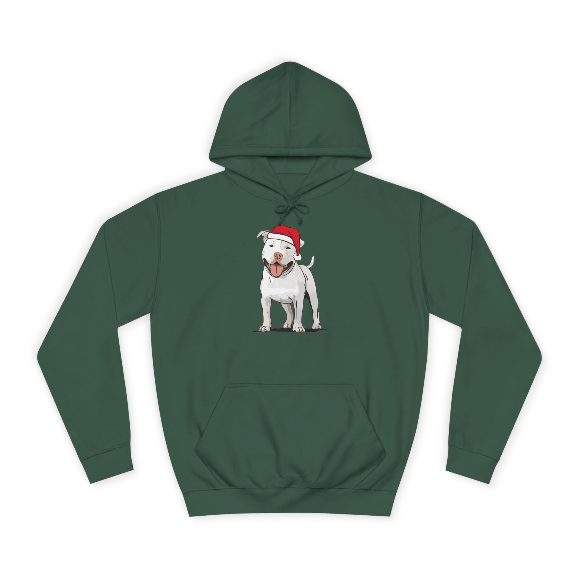 Pit Bull Terrier Dog Holiday Hoodie, Christmas Pullover Hooded Sweatshirt, Xmas Santa White Pitbull Dogs Apparel Hoodies Sweatshirts